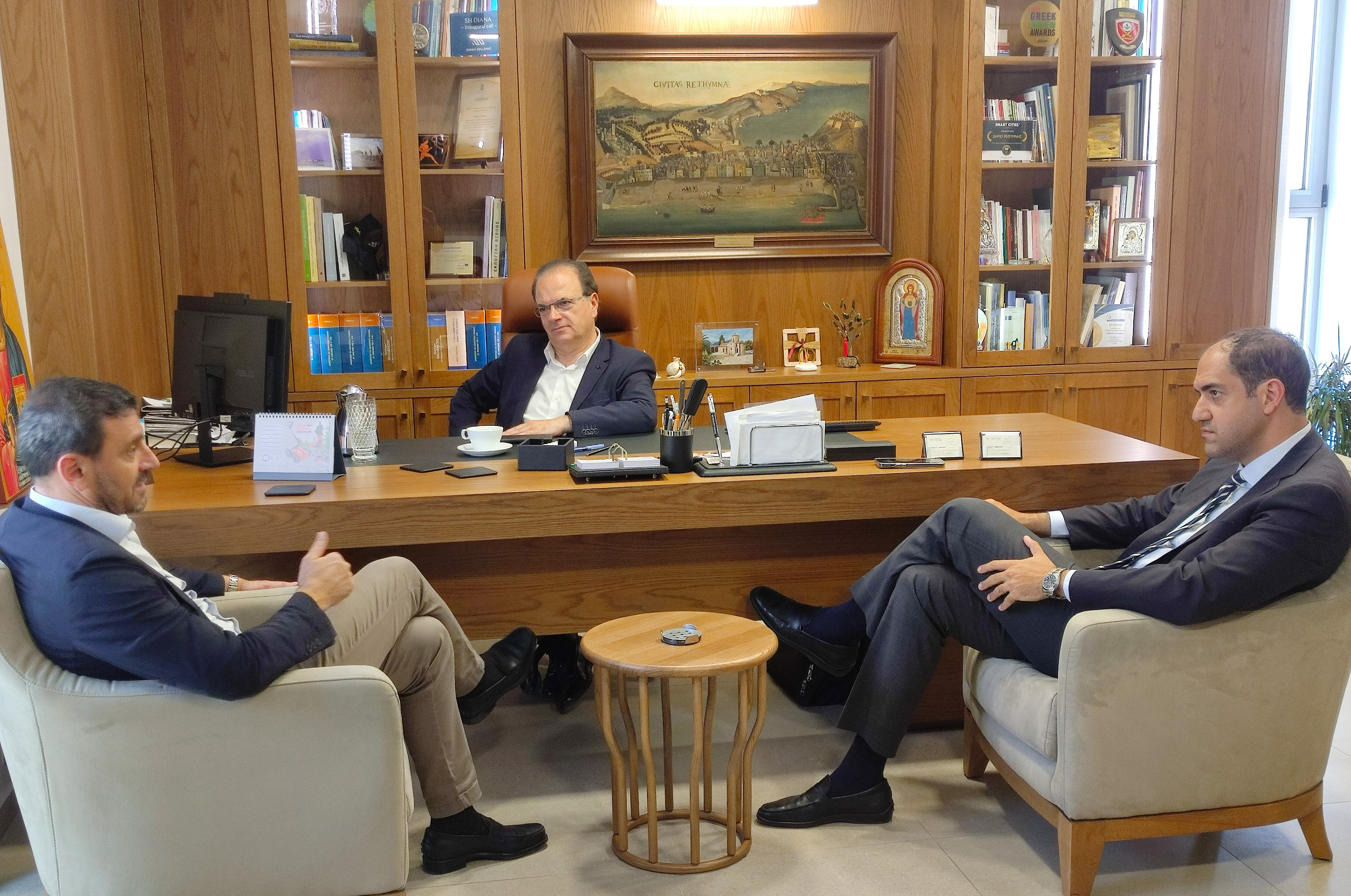 Θεσμική συνάντηση με τον Υφυπουργό Προστασίας του Πολίτη κ. Ανδρέα Νικολακόπουλο είχε σήμερα ο Δήμαρχος Ρεθύμνης κ. Γιώργης Χ. Μαρινάκης, στο Δημαρχείο. Παρευρέθηκε ο Υφυπουργός Εθνικής Άμυνας, Βουλευτής Ρεθύμνου της Ν.Δ. κ. Γιάννης Κεφαλογιάννης.