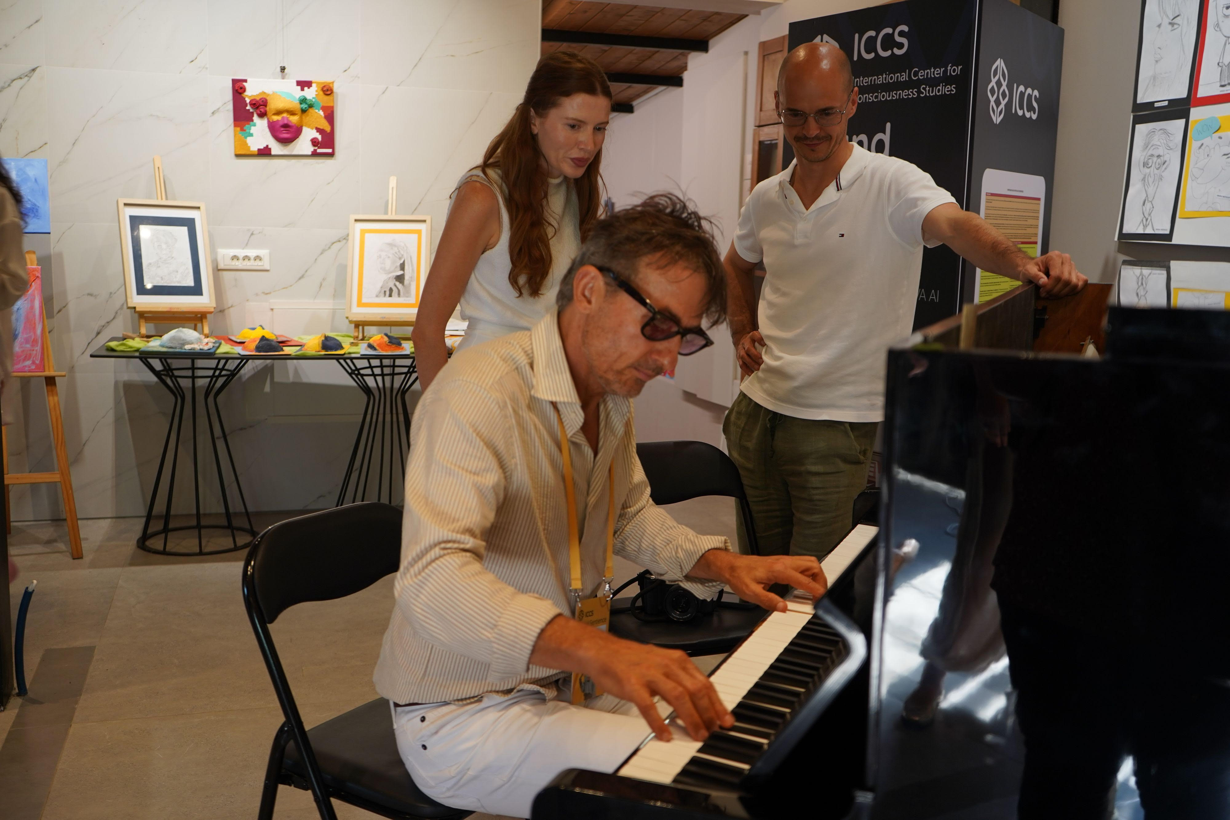 Με ειδική καλλιτεχνική εκδήλωση που περιελάμβανε κλασική μουσική και μπαλέτο έγινε η έναρξη του συνεδρίου στο νέο φιλόξενο χώρο της Πινακοθήκης. Τη σκυτάλη στη μουσική πήραν όμως και κάποιοι σύνεδροι, παίζοντας εξαιρετική μουσική στο πιάνο, όπως ο Dmitry Volkov, επιχειρηματίας, φιλόσοφος και συνιδρυτής του ICCS.Ο τελευταίος, μάλιστα, απαντώντας στο ερώτημα επίσης του Patrick House για το ποια ήταν η πιο συγκλονιστική στιγμή από την επαφή του με Τεχνητή Νοημοσύνη αναφέρθηκε σε δύο εμπειρίες του:Η πρώτη ήταν όταν σε μία μεγαλούπολη πήρε ένα ταξί χωρίς οδηγό που το οδηγούσε η τεχνολογία της Τεχνητής Νοημοσύνης. Τα πρώτα λεπτά ήταν τρομακτικά, καθώς η AI οδηγούσε το ταξί σαν ένας «θυμωμένος ταξιτζής» όπως χαρακτηριστικά είπε. Δεν δίσταζε, δεν έκοβε ταχύτητα… δε φοβόταν! Παρόλαυτα, ήταν μια εμπειρία που θα την ξαναζούσε και συνέστησε σε όλους να τη ζήσουν.Η δεύτερη εμπειρία του ήταν όταν έφερε στο σπίτι πρώτη φορά μία ρομποτική σκούπα. Ο σκύλος του δεν είχε ξαναδεί ρομποτική σκούπα. Κάποια στιγμή η σκούπα και ο σκύλος συναντήθηκαν, για λίγα δευτερόλεπτα παρατηρούσαν ο ένας τον άλλο χωρίς να ξέρουν πώς να αντιδράσουν και τι συμπέρασμα να βγάλουν από το περίεργο πλάσμα που είχαν απέναντί τους, μέχρι που τη λύση σε αυτήν την άβολη στιγμή έδωσε η σκούπα όταν έκρινε ότι έπρεπε να πιτσιλίσει με νερό το σκύλο. Ο τελευταίος έτρεξε μακριά. Η Τεχνητή Νοημοσύνη είχε επικρατήσει…