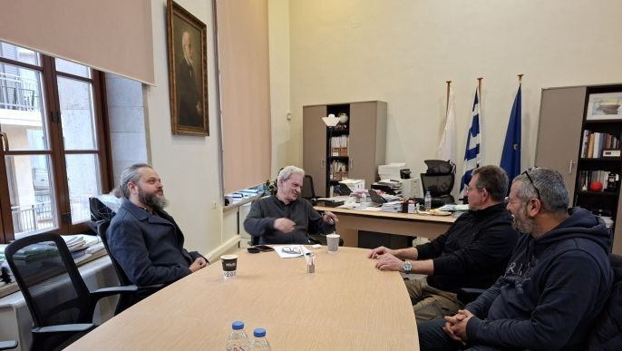 Συνεχίζοντας τις συναντήσεις με πολίτες και εκπροσώπους Συλλόγων και Φορέων της πόλης, ο Δήμαρχος Ηρακλείου Αλέξης Καλοκαιρινός υποδέχθηκε το απόγευμα της Πέμπτης 2/4 στη Λότζια, μαζί με τον Αντιδήμαρχο Τεχνικών Έργων & Πρασίνου Δημήτρη Σπυριδάκη και τον Ειδικό Σύμβουλο Κώστα Πιλαφτσή, το Προεδρείο του Πολιτιστικού Συλλόγου Φορτέτσας, εκπροσώπους καταστημαρχών του πεζόδρομου της Μιλάτου και τον Πρόεδρο του Δικτύου Οινοποιών Κρήτης Στέλιο Ζαχαριουδάκη