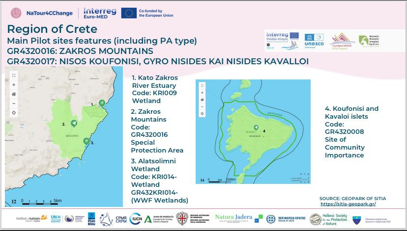 Η συνεργάτης της Περιφέρειας Κρήτης, Κυριακή Θεοδώρου, τονίζει: «Η Κρήτη είναι μια από τις πιο ευάλωτες περιοχές της Μεσογείου. Οι θερμοκρασίες αυξάνονται, οι καύσωνες παρατείνονται και οι βροχοπτώσεις μειώνονται. Το NaTour4CChange παρέχει ένα ολοκληρωμένο πλαίσιο δράσης για βιώσιμη ανάπτυξη και προστασία των φυσικών πόρων, με έμφαση στην περιοχή της Ζάκρου και το Κουφονήσι, περιοχές που τα δεδομένα δείχνουν ότι οι συνέπειες της κλιματικής κρίσης είναι ορατές».
