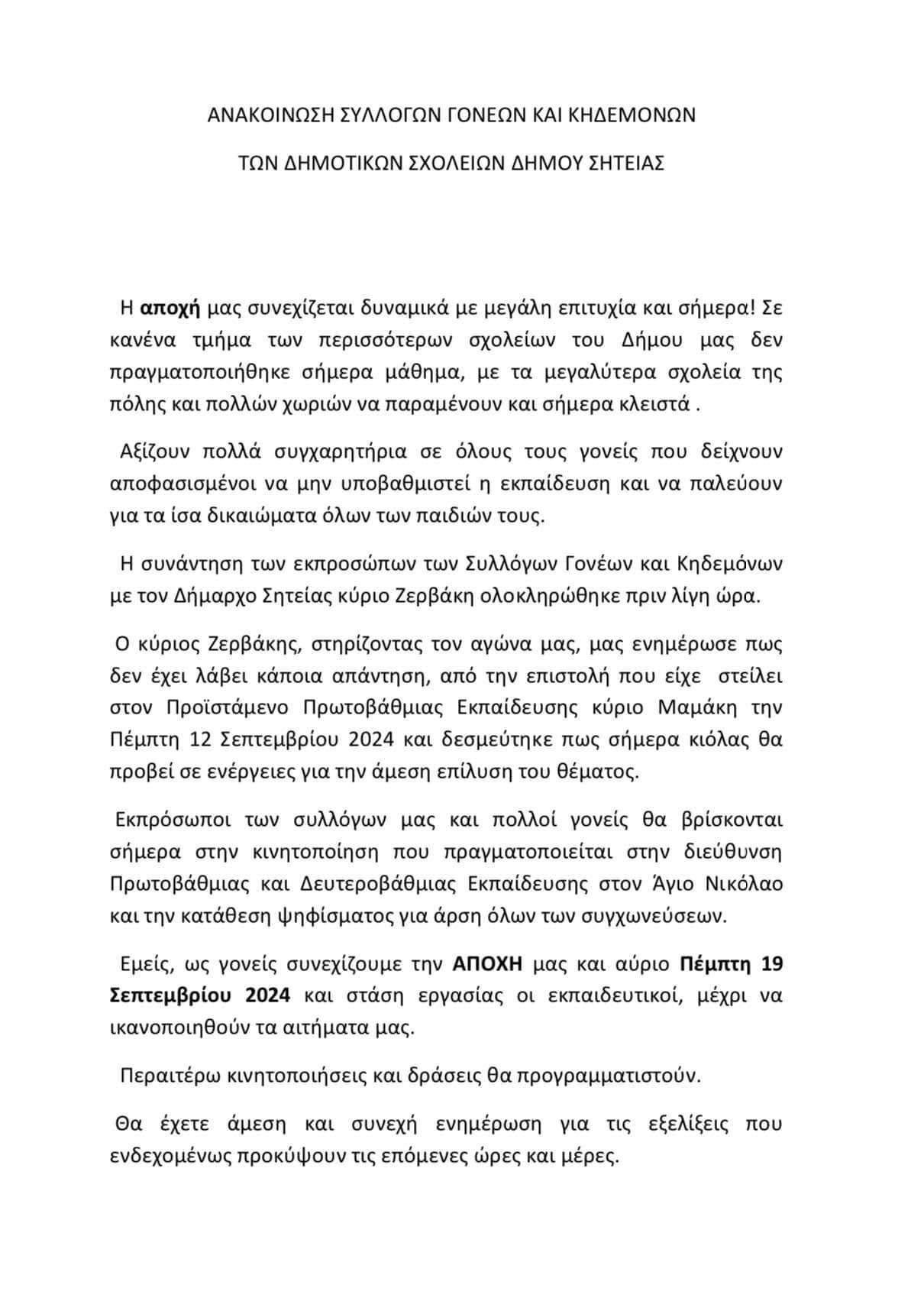 Διαβάστε την ανακοίνωση των συλλόγων γονέων