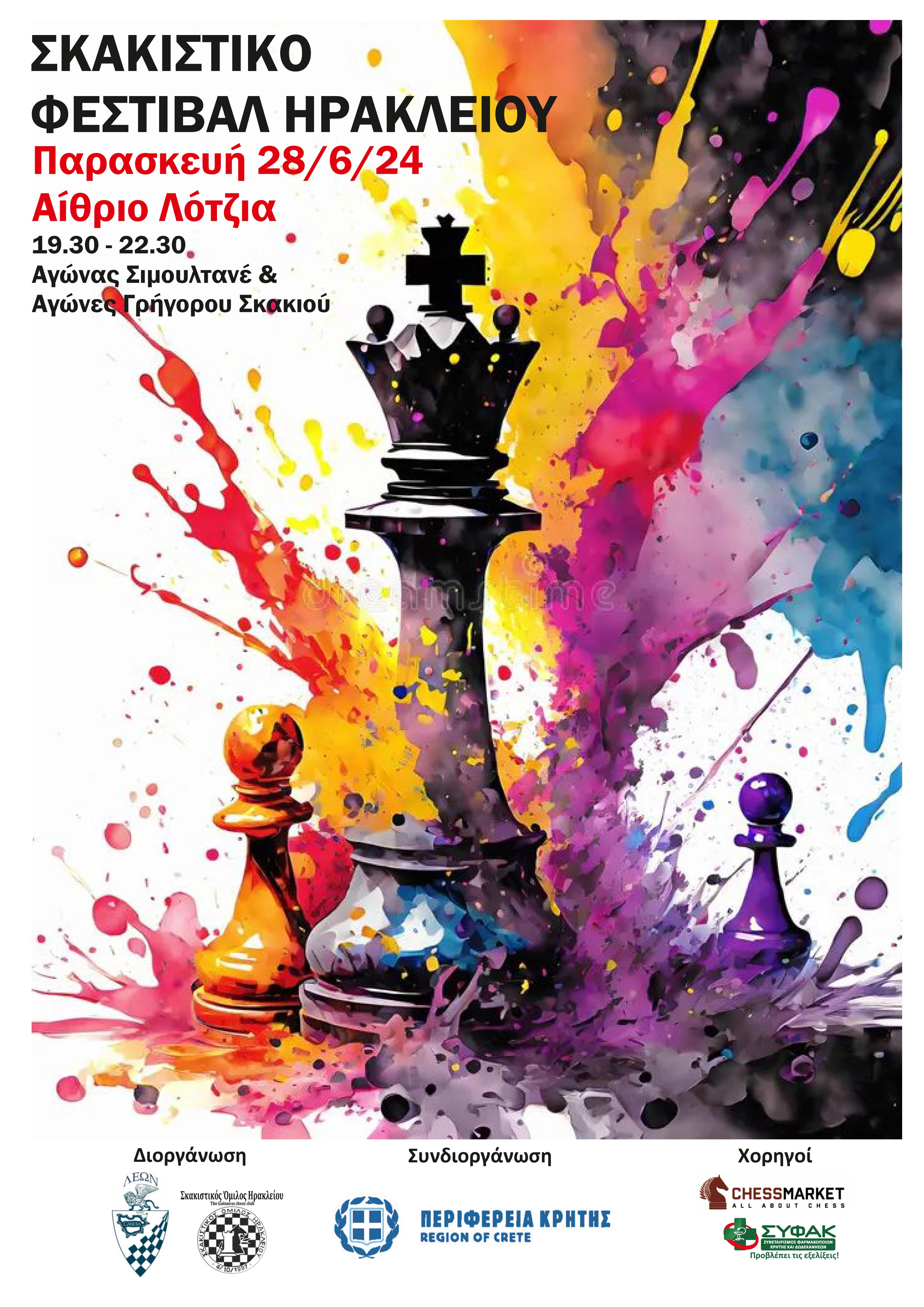 Το Σκακιστικό Φεστιβάλ Ηρακλείου διοργανώνουν ο Σκακιστικός Όμιλος «Λέων» και ο Σκακιστικός Όμιλος Ηρακλείου σε συνδιοργάνωση με την Περιφέρεια Κρήτης.