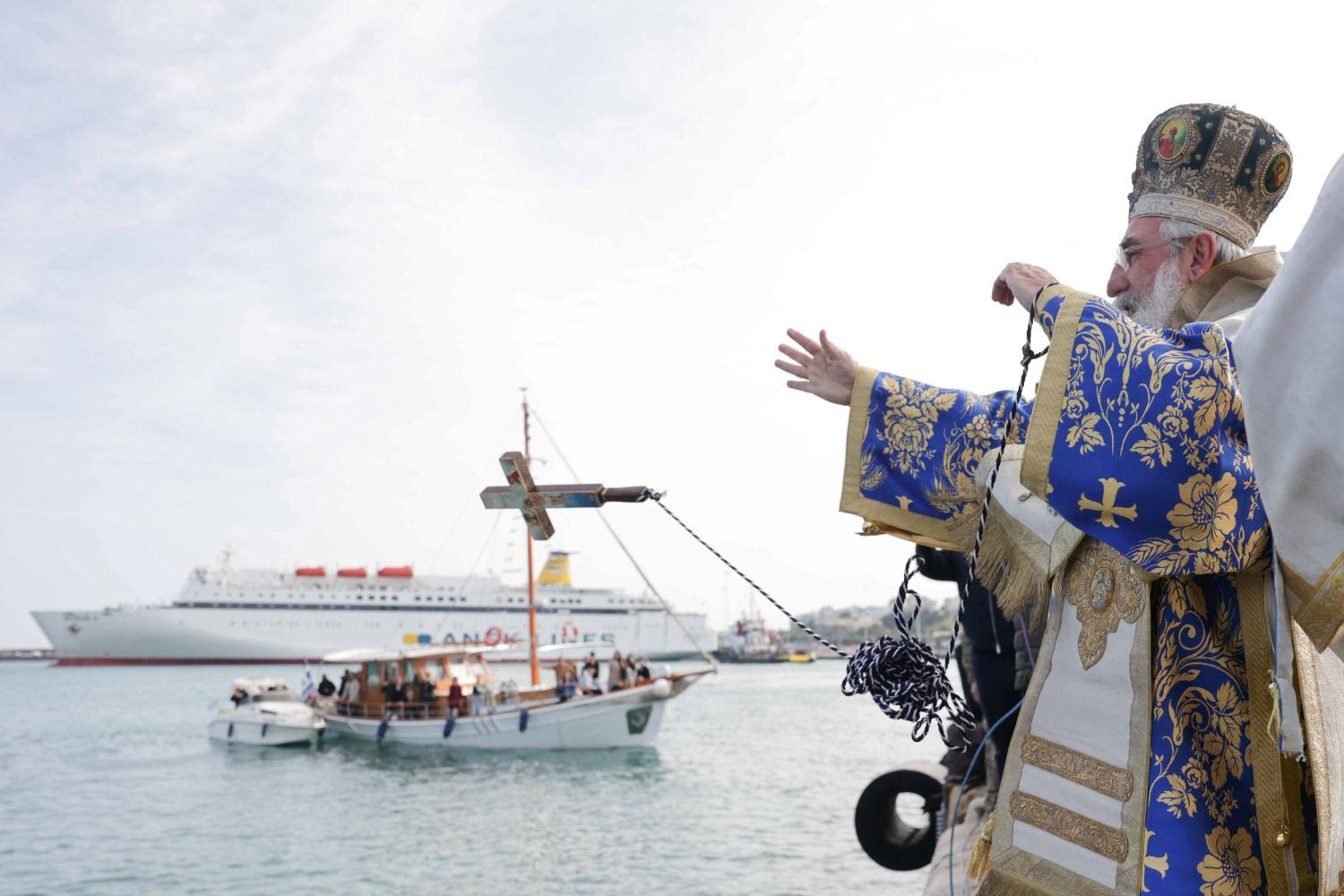 Στην καθιερωμένη λιτανεία στον Λιμένα Ηρακλείου, όπου τελέστηκε ο αγιασμός των υδάτων από τον Σεβασμιότατο Αρχιεπίσκοπο Κρήτης κ. Ευγένιο, συμμετείχε ο Περιφερειάρχης Κρήτης Σταύρος Αρναουτάκης.