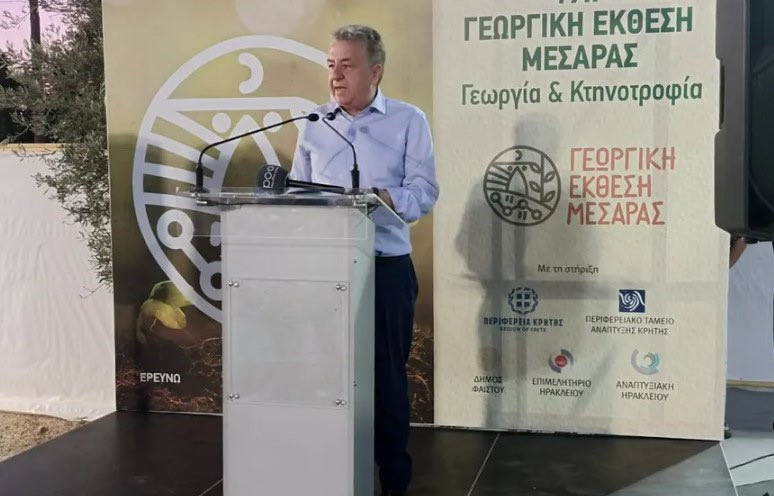 Ο Περιφερειάρχης Κρήτης στην ομιλία του υπογράμμισε την ανάγκη στήριξη του πρωτογενή τομέα, τόνισε πως οι αγρότες και οι κτηνοτρόφοι, πρέπει επιτέλους να αισθανθούν ότι δεν αδικούνται και ζήτησε την ολοκλήρωση της εκτροπής του Πλατύ με την ενίσχυση του υδροφόρου ορίζοντα της Μεσαράς που είναι έργο πρώτιστης σημασίας για τη Μεσαρά.