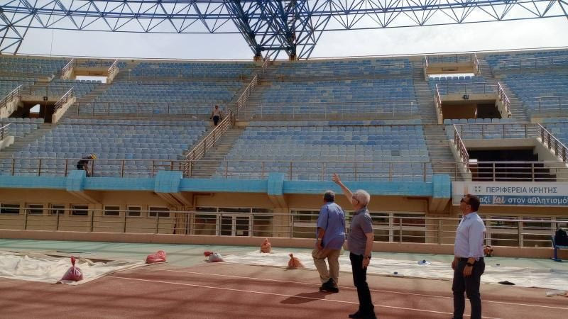 Αυτοψία στις εργασίες αναβάθμισης του Παγκρητίου Σταδίου που οδηγούν στην υψηλότερη κατηγορία της UEFA και εκτελούνται από την Αντιδημαρχία Αθλητισμού και την Ανάπτυξη Αθλητισμού Ηρακλείου Α.Ε Ο.Τ.Α., με την υποστήριξη της Περιφέρειας Κρήτης, πραγματοποίησε ο Δήμαρχος Ηρακλείου Αλέξης Καλοκαιρινός μαζί με τον Αντιδήμαρχο Άθλησης & Αθλητισμού και Πρόεδρο της Α.Α.Η Γιάννη Τσαπάκη και τον Διευθυντή των Αθλητικών Κέντρων του Δήμου Δημήτρη Τσιράκο.