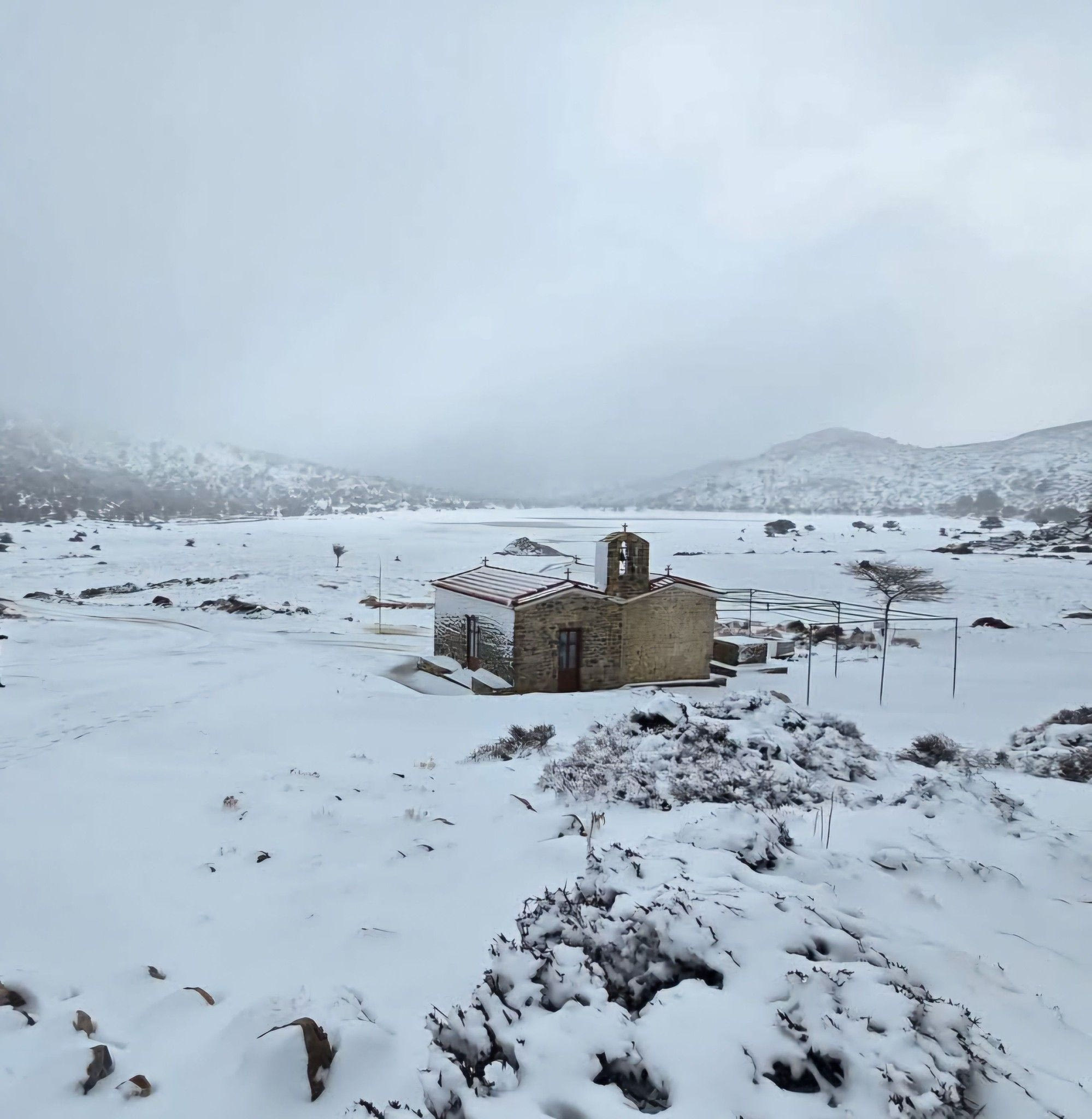 Το Οροπέδιο του Ομαλού στη Βιάννο έχει καλυφθεί από χιόνι, δημιουργώντας ένα πανέμορφο χειμωνιάτικο τοπίο.
