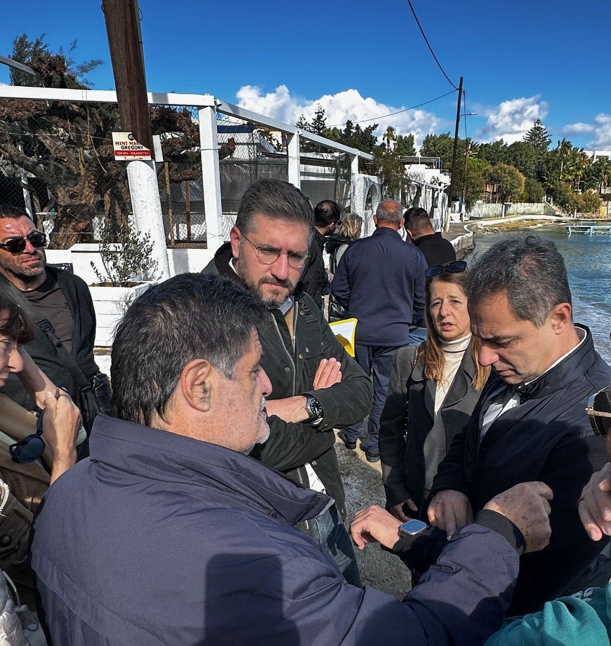 Κατά την επίσκεψη, ο Δήμαρχος Μαλεβιζίου, συνοδευόμενος από Αντιδημάρχους και στελέχη του Δήμου, είχε την ευκαιρία να συνομιλήσει με κατοίκους, επαγγελματίες, τα μέλη του Εμπορικού Συλλόγου της περιοχής, αλλά και τον πρόεδρο της Τοπικής Κοινότητας Αχλάδας Γιώργο Πεδιώτη, για την αποκατάσταση των επιπτώσεων από την κλιματική κρίση στην παραλία της Αγίας Πελαγίας.