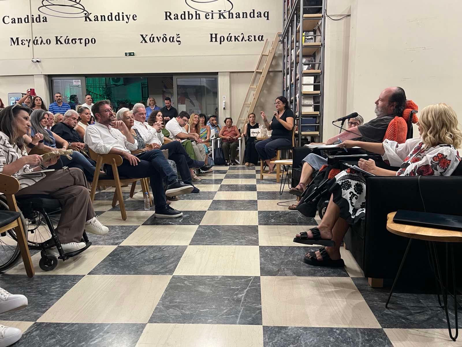 Για την ατμόσφαιρα του βιβλίου και τη γραφή του Κωνσταντίνου Σύρμου μίλησε ο Δήμαρχος Ηρακλείου, μετά την ολοκλήρωση του συμμετοχικού δρώμενου με πρωταγωνιστές αναγνώστες όλων των ηλικιών οι οποίοι έγιναν για λίγο «ανθρώπινοι σελιδοδείκτες» διαβάζοντας αποσπάσματα του βιβλίου.