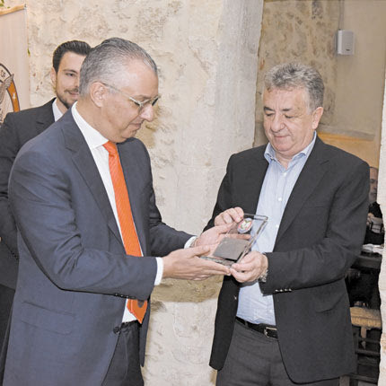 Με την ολοκλήρωση της ομιλίας του ο πρόεδρος της ΑΗΕΡΑ Ηρακλείου επέδωσε ως δείγμα αναγνώρισης του έργου του, τιμητική πλακέτα στον κο Σταύρο Αρναουτάκη για τη συνολική προσφορά στην Περιφέρεια Κρήτης και στην τοπική κοινωνία.