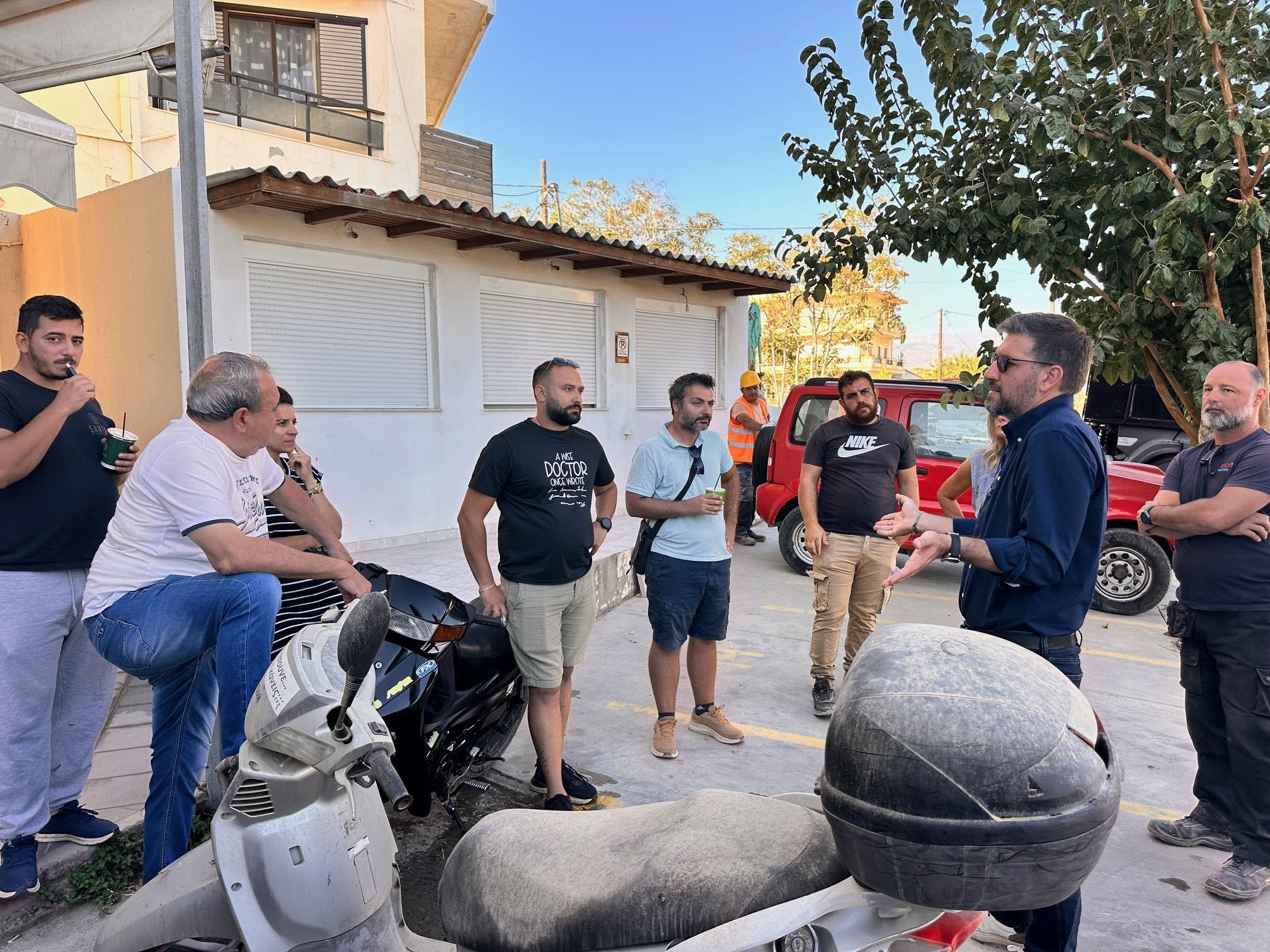 Στο πλαίσιο της επίσκεψης ο Μενέλαος Μποκέας είχε την ευκαιρία να συνομιλήσει με ιδιοκτήτες και επιχειρηματίες για την εξέλιξη των εργασιών. Σημείο αναφοράς για την ομαλή και ταχύτερη εξέλιξη των εργασιών το πνεύμα συνεργασίας και αμοιβαίας κατανόησης που είναι σαφές ότι ενισχύει την προσπάθεια όλων για τον κοινό́ στόχο της ολοκλήρωσης του έργου το συντομότερο δυνατόν.
