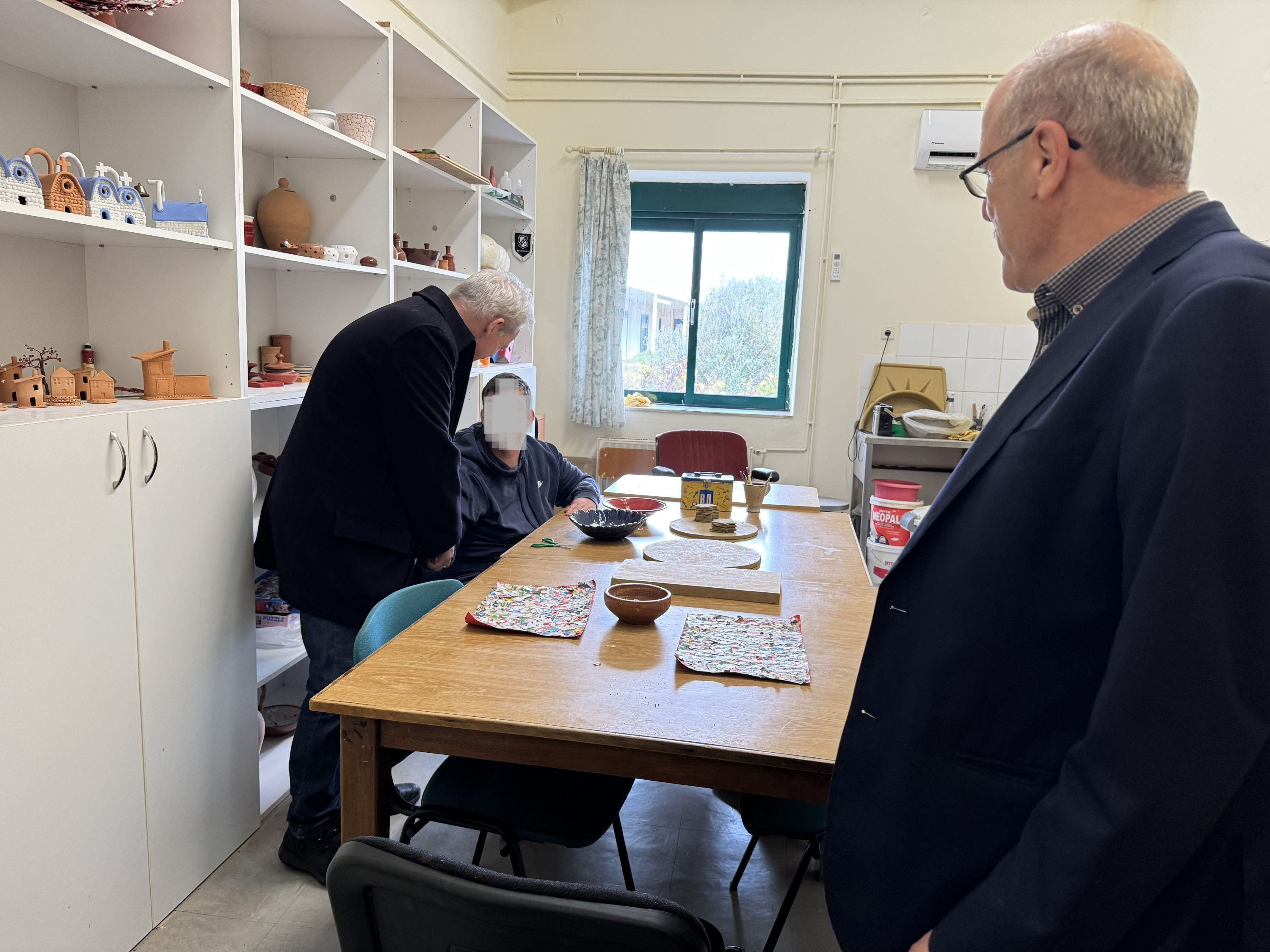 Ο Αλέξης Καλοκαιρινός και ο Γιώργος Τσαγκαράκης συζήτησαν με την Πρόεδρο του Δ.Σ. του Κέντρου Άννα Φερετζάκη, τον Διευθυντή και τον Αναπληρωτή Διευθυντή Χρήστο Τζαμούση και Νίκο Παπαδάκη αντίστοιχα, με εκπαιδευτικούς και ωφελούμενους της δομής, αντάλλαξαν ευχές ενόψει των εορτών και δέχθηκαν ως δώρο ένα όμορφο πήλινο καραβάκι κατασκευασμένο από τα μέλη του Κέντρου.