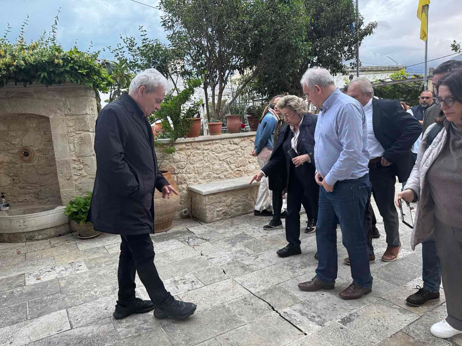 Ο δήμαρχος Ηρακλείου περιηγήθηκε στα σημεία όπου έχουν εμφανιστεί οι ρηγματώσεις, τόσο σε δρόμους όσο και σε δέκα κατοικίες, σε μήκος περίπου 150 μέτρων, διαπιστώνοντας το σοβαρό πρόβλημα που έχει δημιουργηθεί, ανακοινώνοντας ότι θα ζητήσει να κηρυχθεί το χωριό σε κατάσταση έκτακτης ανάγκης: