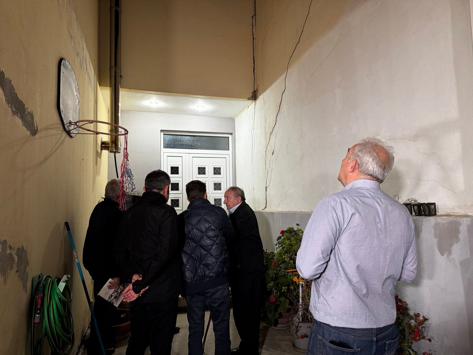 Ο δήμαρχος κ. Α. Καλοκαιρινός με τους αντιδημάρχους Τεχνικών Έργων και Βιώσιμης Κινητικότητας Γιώργο Σισαμάκη, Δημοτικής Αστυνομίας Μανόλη Χαιρέτη και Καθαριότητας Νίκο Γιαλιτάκη, τη γενική γραμματέα του Δήμου Μαρία Σκραφνάκη, τον πρόεδρο του Τοπικού Συμβουλίου Βουτών Χαράλαμπο Αλογδιανάκη, μέλη του Συμβουλίου και τον διευθυντή της Διεύθυνσης Τεχνικών Έργων και Μελετών του Δήμου Ηρακλείου Μανόλη Μανουσάκη, περπάτησαν όλο το χωριό από νωρίς το πρωί και μίλησαν με τους κατοίκους για να δουν ποια είναι η εξέλιξη του φαινομένου.