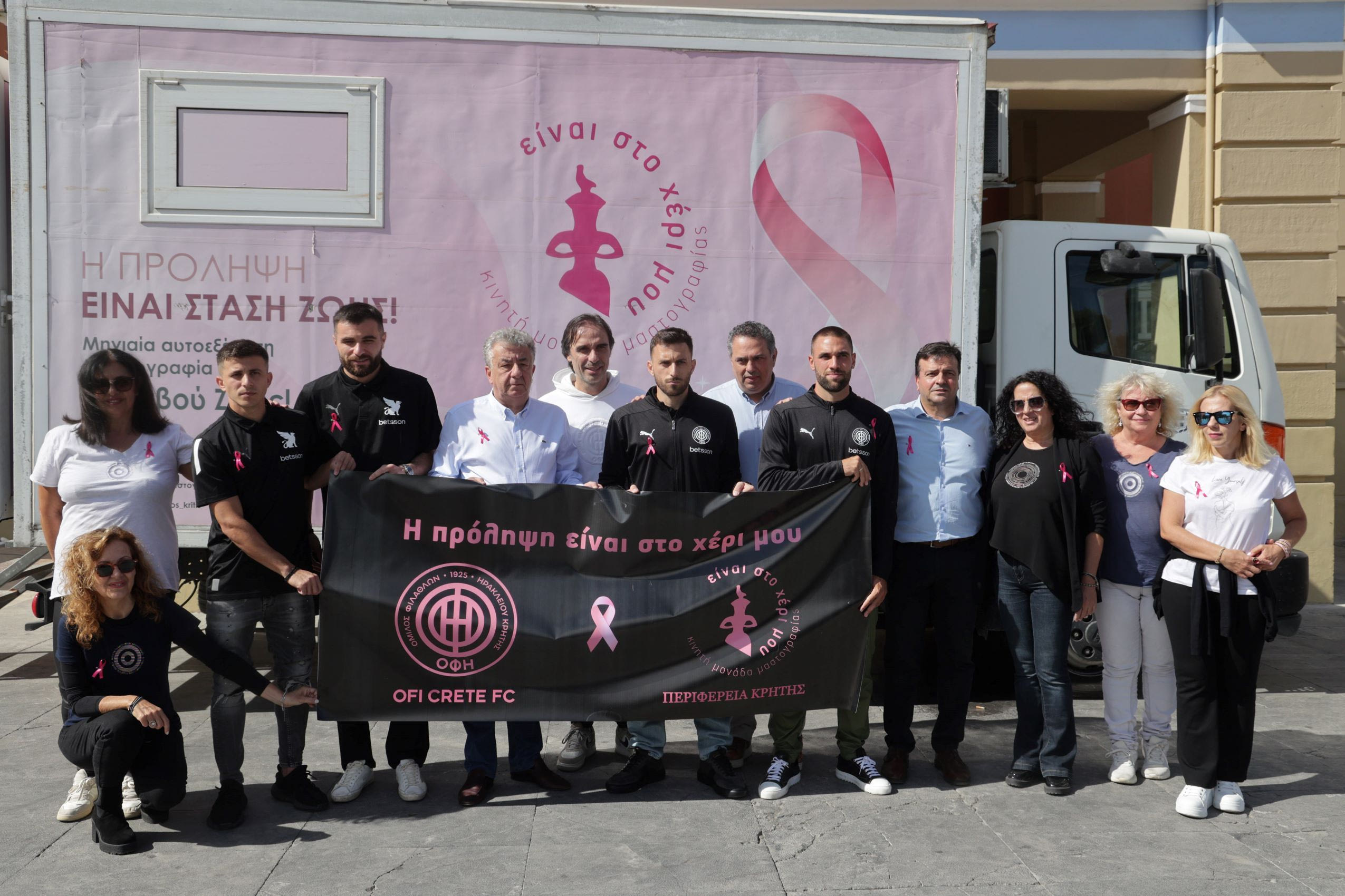 H Περιφέρεια Κρήτης σε συνεργασία με την «ΠΑΕ ΟΦΗ 1925» και τον Παγκρήτιο Σύλλογο κατά του καρκίνου του μαστού «Στόχος – Πρόληψη», πραγματοποίησαν σήμερα ενημερωτική εκδήλωση για την πρόληψη και την αντιμετώπιση του καρκίνου του μαστού, μπροστά από το κτίριο της Περιφέρειας Κρήτης στην πλ. Ελευθερίας.