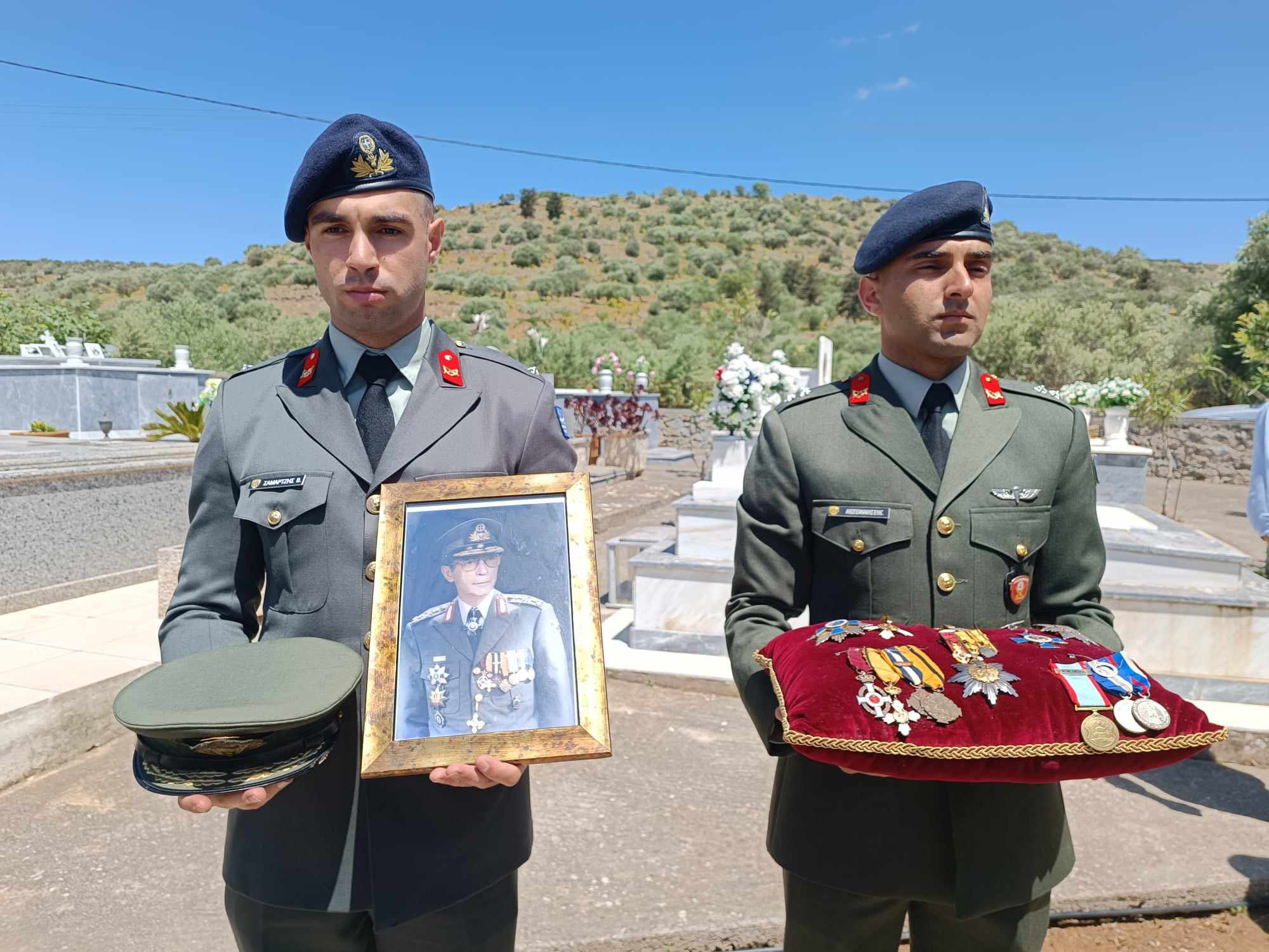 Παρουσία τιμητικού αγήματος του Στρατού, που έψαλε τον Εθνικό Ύμνο, τα οστά του αντιστράτηγου που έφυγε από την ζωή στις 13 Σεπτεμβρίου του 2020,μεταφέρθηκαν από το νέο κοιμητήριο Ηρακλείου στο κοιμητήριο των Αποστόλων Πεδιάδος στον οικογενειακό τάφο, όπου βρίσκονται τα οστά του οπλαρχηγού Κρήτης, Βασιλείου Καρουζάκη.