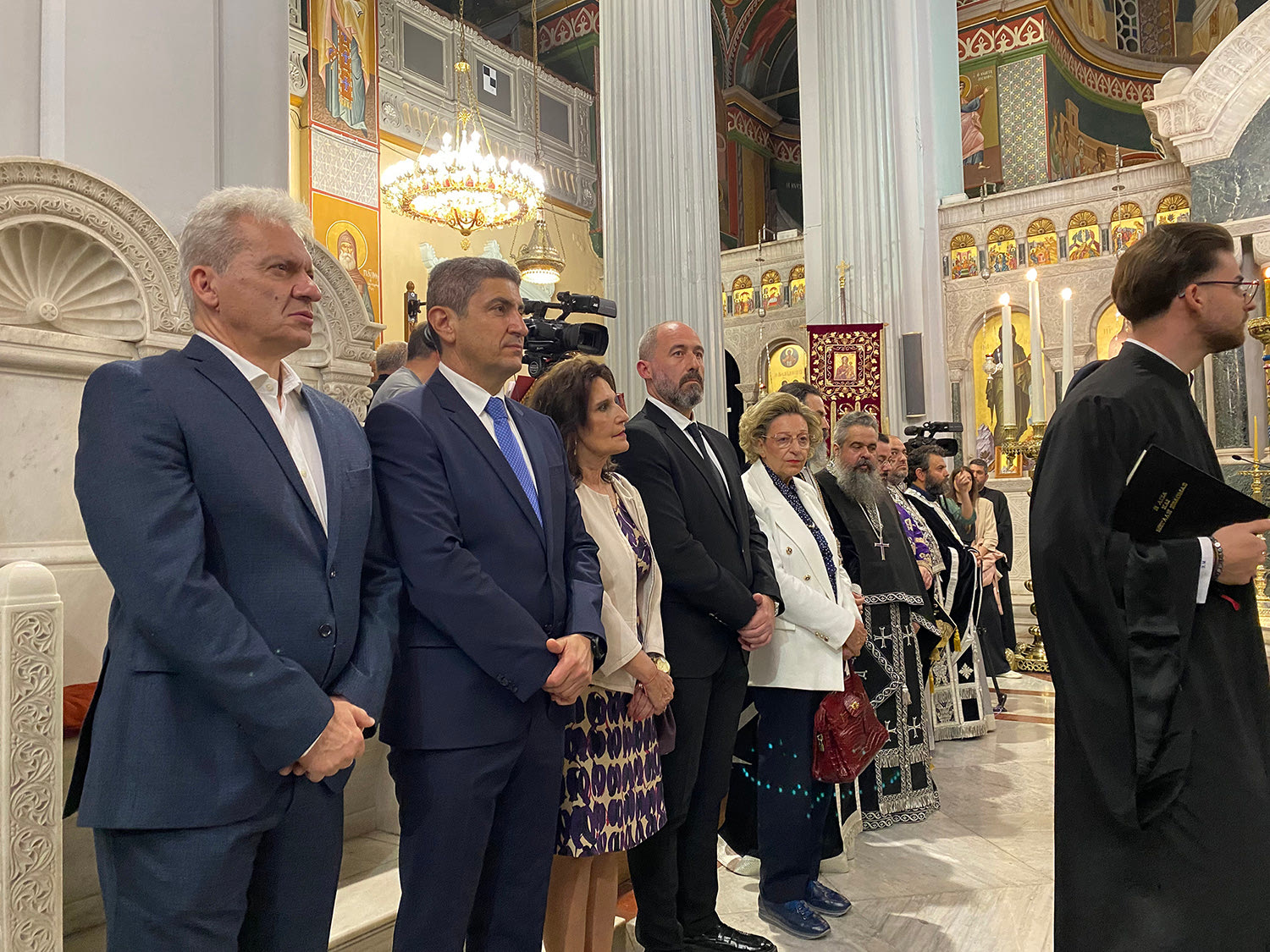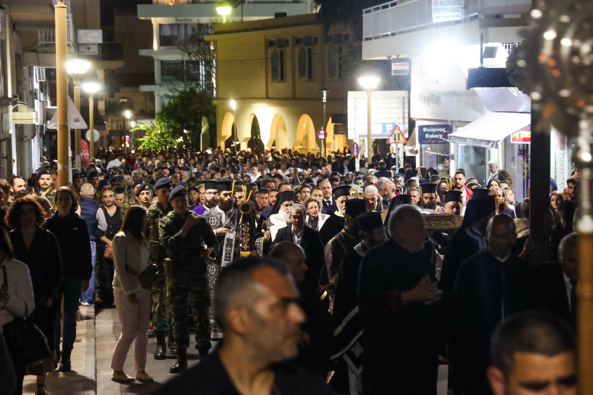 Ο Αλέξης Καλοκαιρινός συνομίλησε και αντάλλαξε ευχές με κληρικούς και πολίτες και συμμετείχε στην περιφορά του Επιταφίου του Αγίου Μηνά, συνοδευόμενος από τη σύζυγό του Άση Λυγερού και στελέχη της Δημοτικής Αρχής.