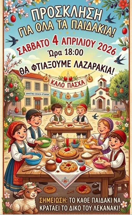 Το Διοικητικό Συμβούλιο του Συλλόγου απευθύνει ανοιχτό κάλεσμα σε όλα τα παιδιά του χωριού να δώσουν το «παρών» και να συμμετάσχουν ενεργά στη δράση, η οποία θα πραγματοποιηθεί το Σάββατο 4 Απριλίου. Η συνάντηση έχει οριστεί για τις 18:00, στον προαύλιο χώρο του Δημοτικού Σχολείου Αϊτανίων.