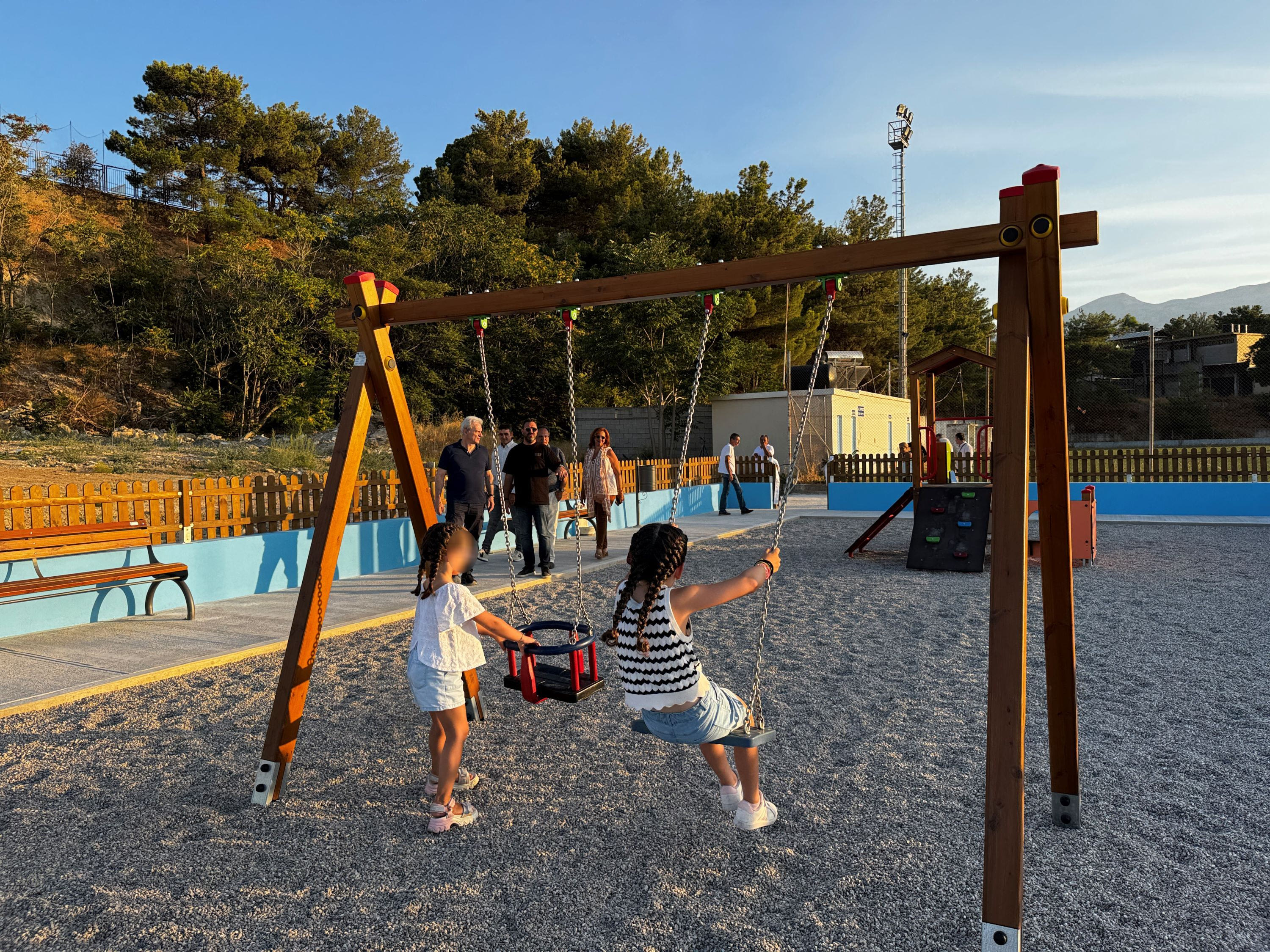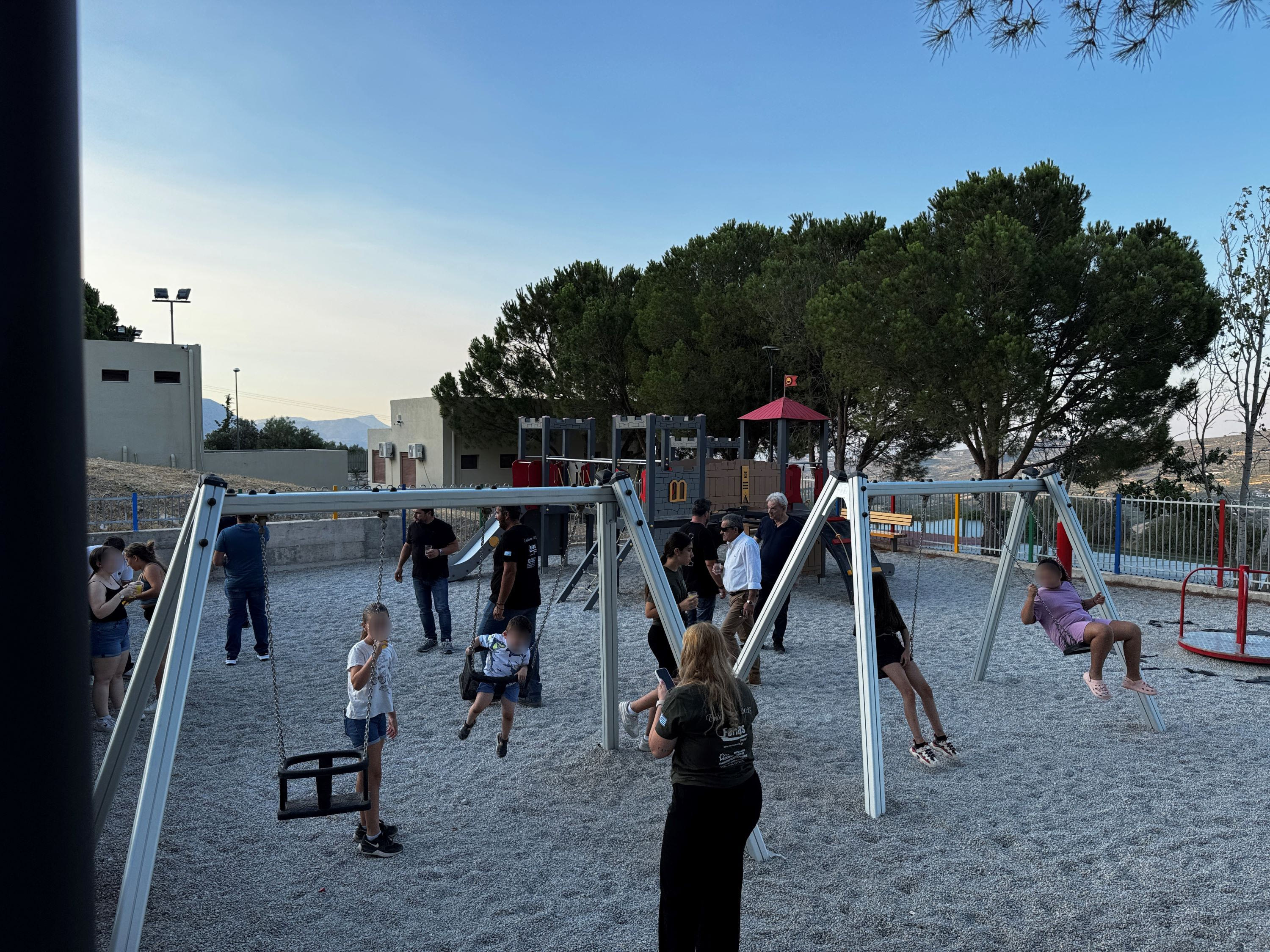 Δύο νέες παιδικές χαρές στον Άγιο Μύρωνα και στις Κάτω Ασίτες εγκαινίασαν τα παιδιά των Δημοτικών Κοινοτήτων παρουσία του Δημάρχου Ηρακλείου Αλέξη Καλοκαιρινού, του Αντιδημάρχου Τεχνικών Υποδομών και Βιώσιμης Κινητικότητας Γιώργου Σισαμάκη και του Δημοτικού Συμβούλου Δημήτρη Σπυριδάκη το απόγευμα της Πέμπτης 24/7.