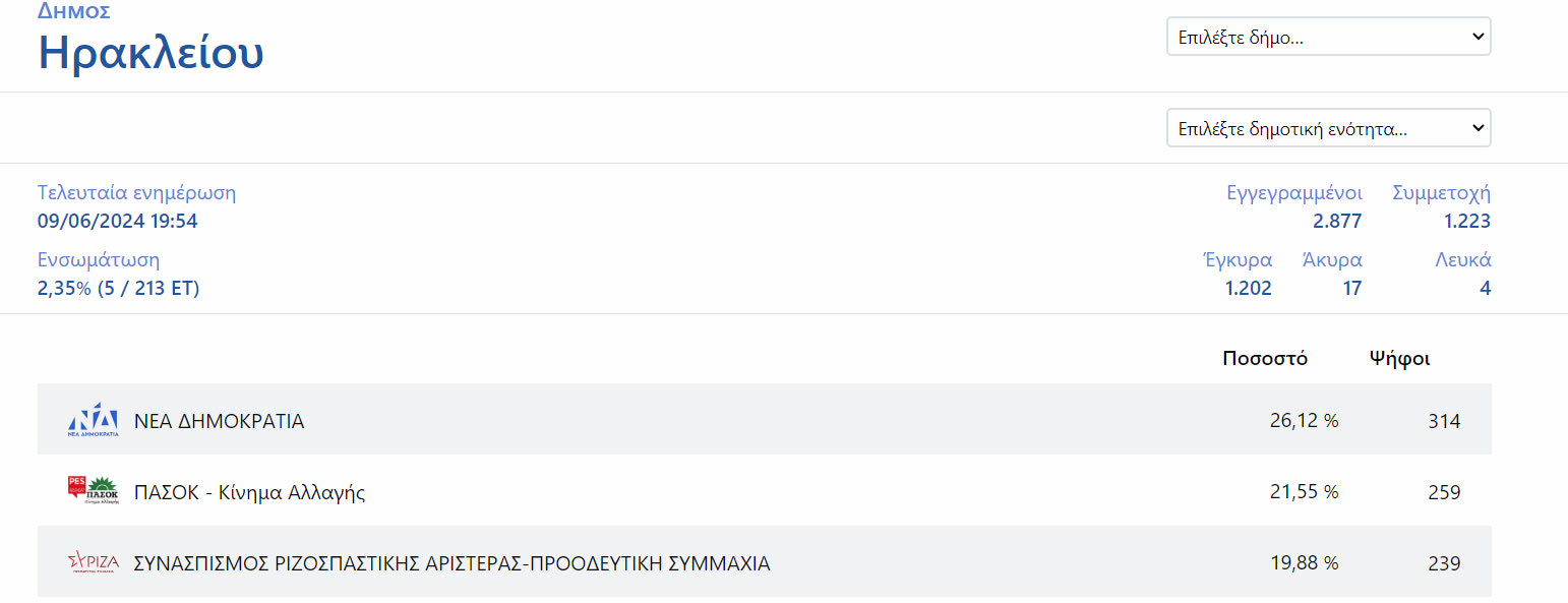 Μόλις στο 2,35% η Νέα Δημοκρατία προηγείται του ΠΑΣΟΚ με 26,12% έναντι 21,55% ενώ το ΣΥΡΙΖΑ με αυτή την ενσωμάτωση βρίσκεται στο 19,88%