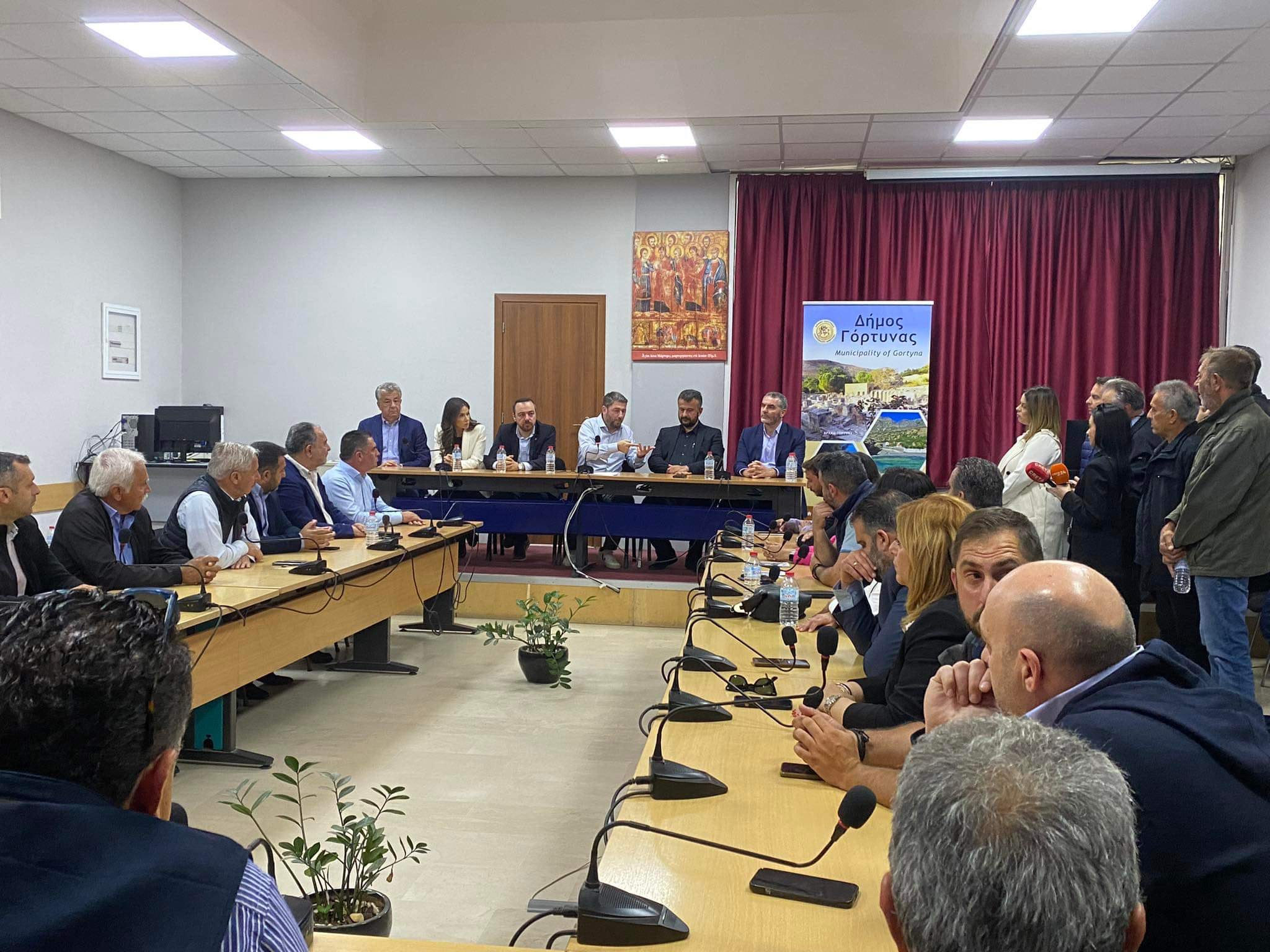 Τον Δήμο Γόρτυνας επισκέφθηκε ο Πρόεδρος του ΠΑΣΟΚ – ΚΙΝΑΛ, Νίκος Ανδρουλάκης, συνοδευόμενος από τους βουλευτές Ηρακλείου, Ελένη Βατσινά, Φραγκίσκο Παρασύρη και Ρεθύμνου, Μανώλη Χνάρη και από υποψηφίους ευρωβουλευτές του κόμματός του. Τον Πρόεδρο του ΠΑΣΟΚ – ΚΙΝΑΛ, Νίκο Ανδρουλάκη, υποδέχθηκε, στο Δημαρχείο Γόρτυνας, στους Αγίους Δέκα, ο Δήμαρχος Μιχάλης Κοκολάκης. Παρόντες ήταν, επίσης, ο Περιφερειάρχης Κρήτης, Σταύρος Αρναουτάκης, στελέχη της Περιφέρειας και της δημοτικής αρχής, εκπρόσωποι όμορων Δήμων και φορέων της ευρύτερης περιοχής.