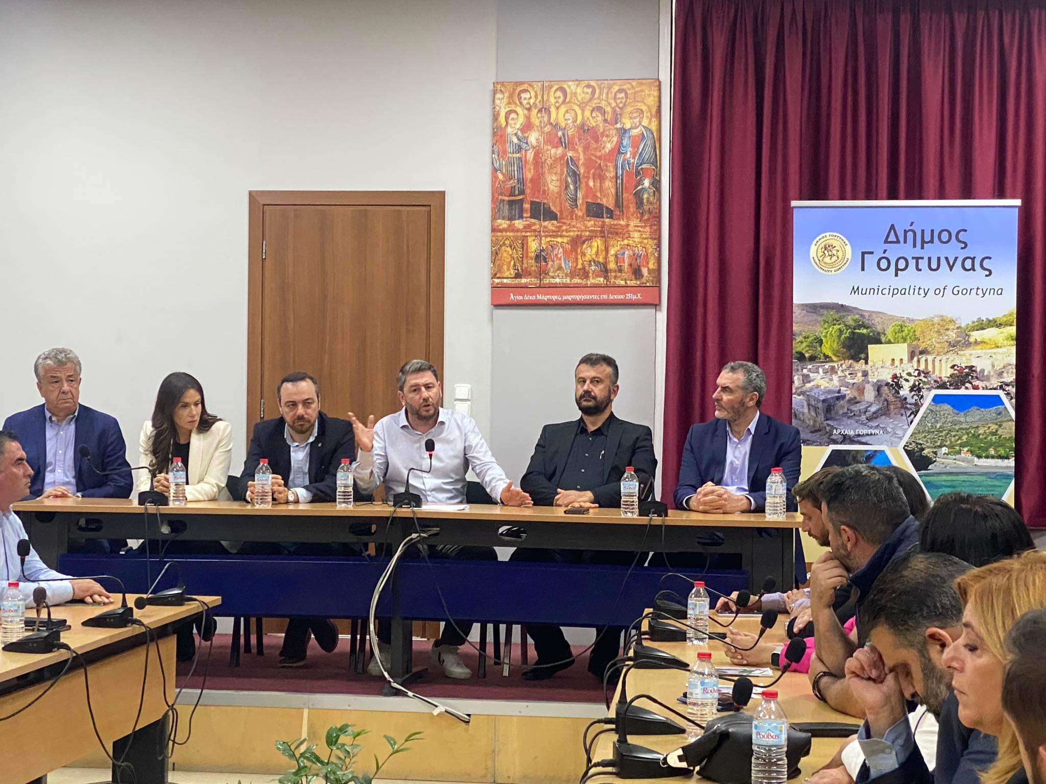Τον Δήμο Γόρτυνας επισκέφθηκε ο Πρόεδρος του ΠΑΣΟΚ – ΚΙΝΑΛ, Νίκος Ανδρουλάκης, συνοδευόμενος από τους βουλευτές Ηρακλείου, Ελένη Βατσινά, Φραγκίσκο Παρασύρη και Ρεθύμνου, Μανώλη Χνάρη και από υποψηφίους ευρωβουλευτές του κόμματός του. Τον Πρόεδρο του ΠΑΣΟΚ – ΚΙΝΑΛ, Νίκο Ανδρουλάκη, υποδέχθηκε, στο Δημαρχείο Γόρτυνας, στους Αγίους Δέκα, ο Δήμαρχος Μιχάλης Κοκολάκης. Παρόντες ήταν, επίσης, ο Περιφερειάρχης Κρήτης, Σταύρος Αρναουτάκης, στελέχη της Περιφέρειας και της δημοτικής αρχής, εκπρόσωποι όμορων Δήμων και φορέων της ευρύτερης περιοχής.