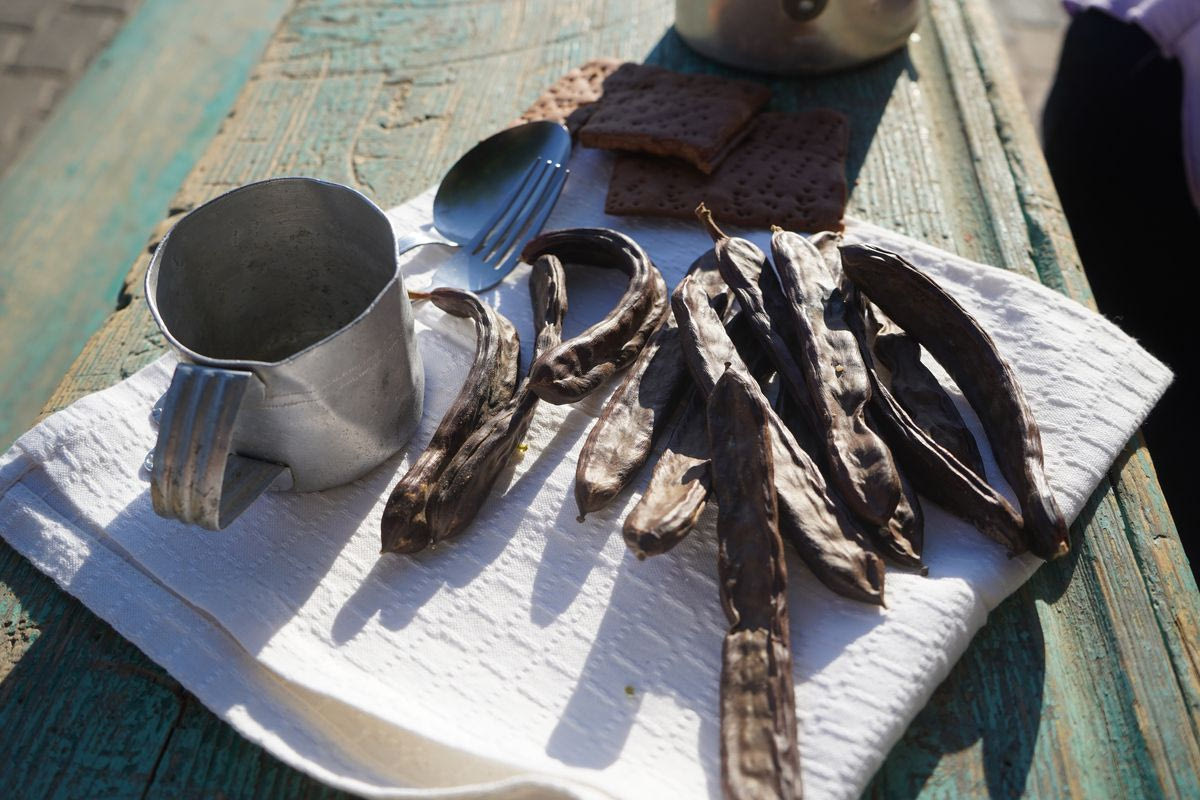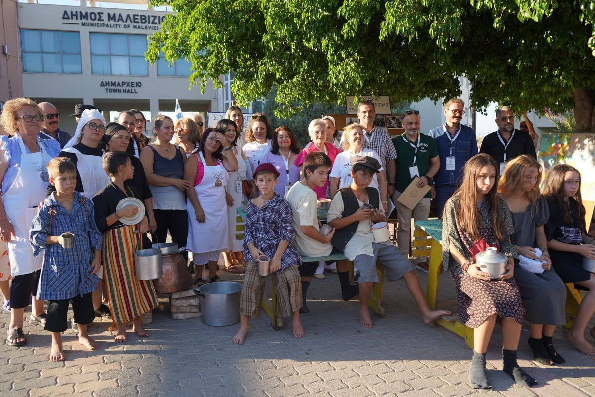 Το συσσίτιο ήταν ρεαλιστικό μέχρι τελευταίας λεπτομέρειας: μπομπότα, βραστό στάρι, χαρούπια – όλα φτιαγμένα με σεβασμό στις μνήμες και τις γεύσεις της εποχής. Πίσω ένα ταμπλό με αυθεντικές φωτογραφίες και ενθύμια από το σχολείο του χωριού τους. Ανάμεσά τους, οι άνθρωποι του συλλόγου, να εξηγούν με συγκίνηση και περηφάνια τις ιστορίες των δικών τους ανθρώπων, τις αληθινές μορφές πίσω απ’ τις εικόνες.