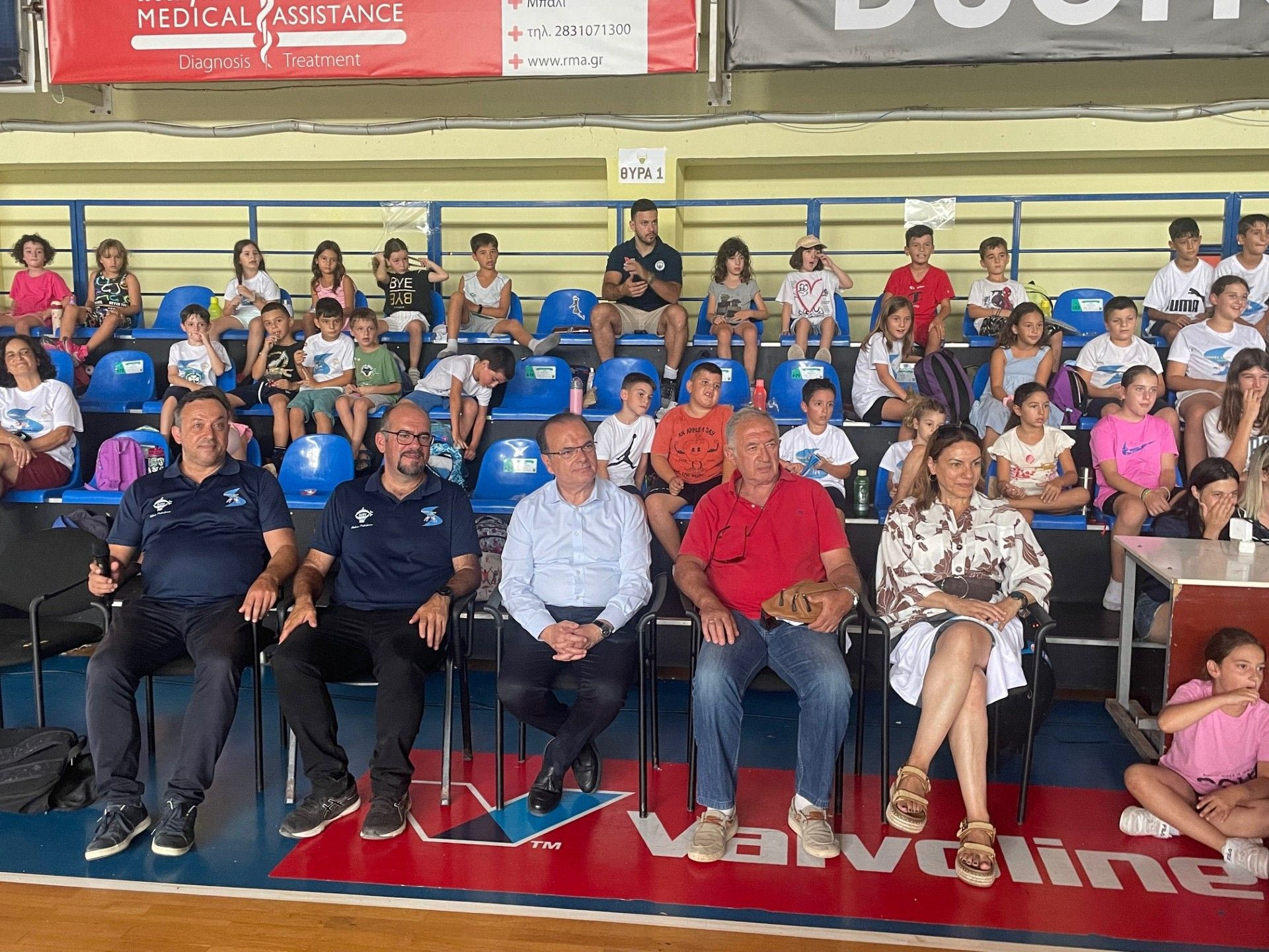 Στην τελετή λήξης της τρίτης περιόδου του 1ο Θερινού Αθλητικού Καμπ παρέστησαν ο Δήμαρχος Ρεθύμνης Γιώργης Χ. Μαρινάκης, ο Αντιδήμαρχος Αθλητισμού Νίκος Προβιάς, ο Αντιδήμαρχος Οικονομικών Δημήτρης Λαχνιδάκης, οι Δημοτικοί Σύμβουλοι Μανούσος Μανουσογιάννης και Ιωάννα Δακανάλη, ο Γενικός Γραμματέας του Δήμου Μαρίνος Ρουσιάς, η Διευθύντρια Οικονομικών Υπηρεσιών Κατερίνα Παρίση, η Αναπληρώτρια Διευθύντρια Πολιτισμού, Τουρισμού, Αθλητισμού και Μουσικής Παιδείας Γιούλη Μπάκα, ο Πρόεδρος της ΕΚΑΣΚ και των Cretan Kings Ρεθύμνου Γιάννης Καλαϊτζάκης, ο Γενικός Γραμματέας του ΟΚΑ Αρκάδι Φώτης Τσιμπούκας και ο πρώην Πρόεδρος του Συλλόγου Δρομέων Υγείας Ρεθύμνου, Κώστας Ζησιμόπουλος.