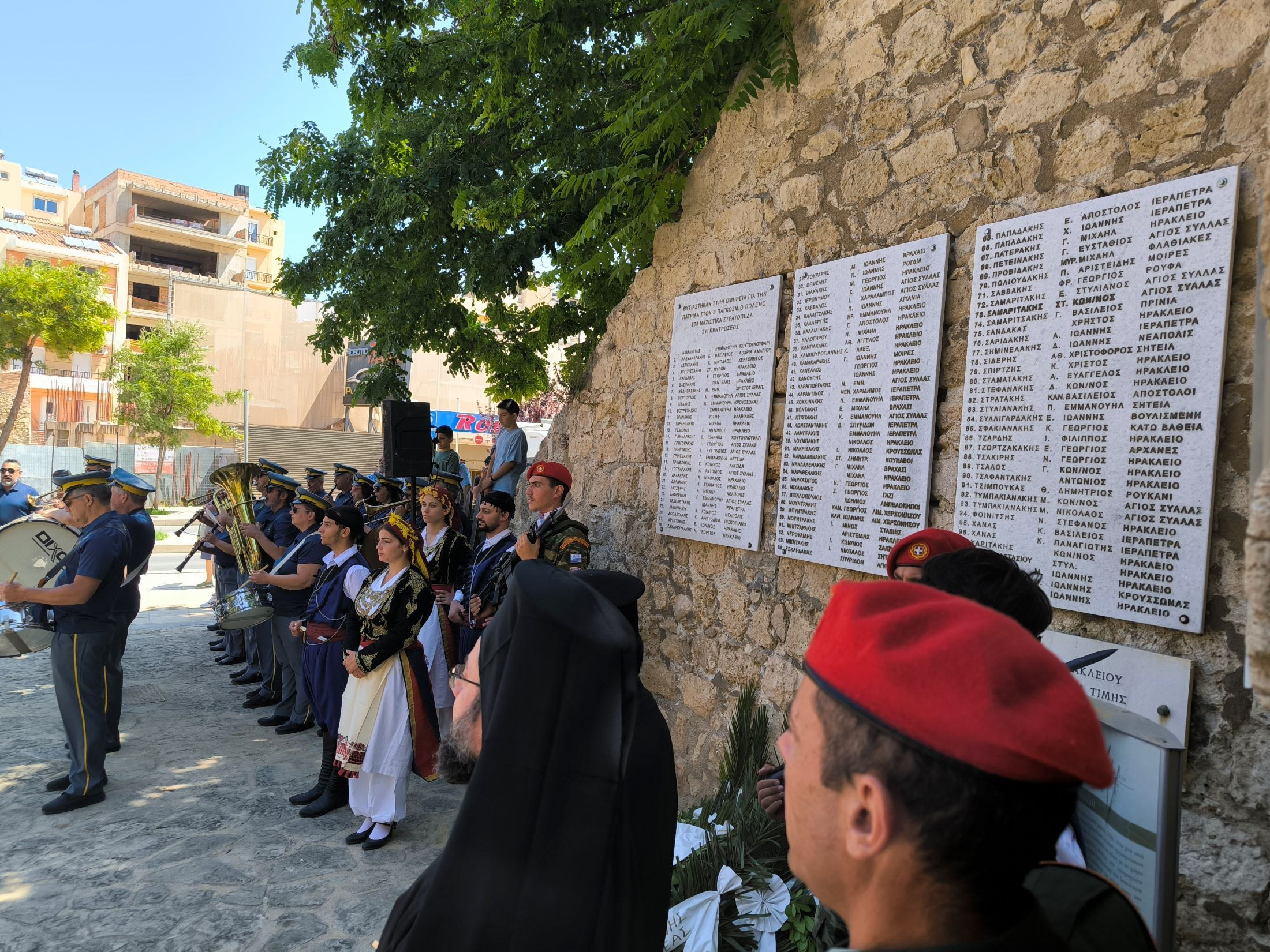 Στη συνέχεια έγινε κατάθεση στεφάνων από τους: Βουλευτή Ηρακλείου της Ν.Δ. Λευτέρη Αυγενάκη, τον Πρόεδρο του Περιφερειακού Συμβουλίου Κρήτης Ευάγγελο Ζάχαρη, που εκπροσώπησε τον Περιφερειάρχη Κρήτης Σταύρο Αρναουτάκη, τον Δήμαρχο Ηρακλείου Αλέξη Καλοκαιρινό, τους εκπροσώπους των Ενόπλων Δυνάμεων και των Σωμάτων Ασφαλείας, κομμάτων, των Αποστράτων, Εφέδρων, φορείς, Αντιστασιακές οργανώσεις, σύλλογοι. Παραβρέθηκαν στην τελετή μνήμης, οι Αντιπεριφερειάρχες Νίκος Ξυλούρης και Στέλιος Βοργιάς, συγγενείς των θυμάτων, εκπρόσωποι των Αυτοδιοίκησης.