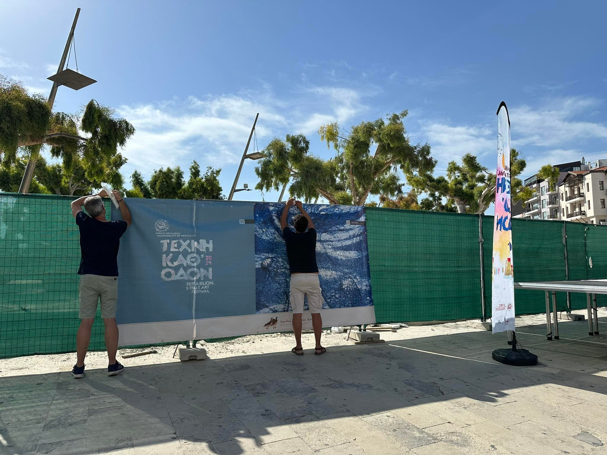 Όλα αυτά στο πλαίσιο του «τέχνη καθ΄οδόν» όπου το Ηράκλειο ομορφαίνει περιμετρικά του εργοταξίου ανάπλασης της πλατείας Ελευθερίας, καθώς στην περίφραξη του τοποθετούνται μεγάλοι μουσαμάδες στους οποίους έχουν τυπωθεί πίνακες έργων τέχνης που ανήκουν στην πινακοθήκη του Δήμου Ηρακλείου.