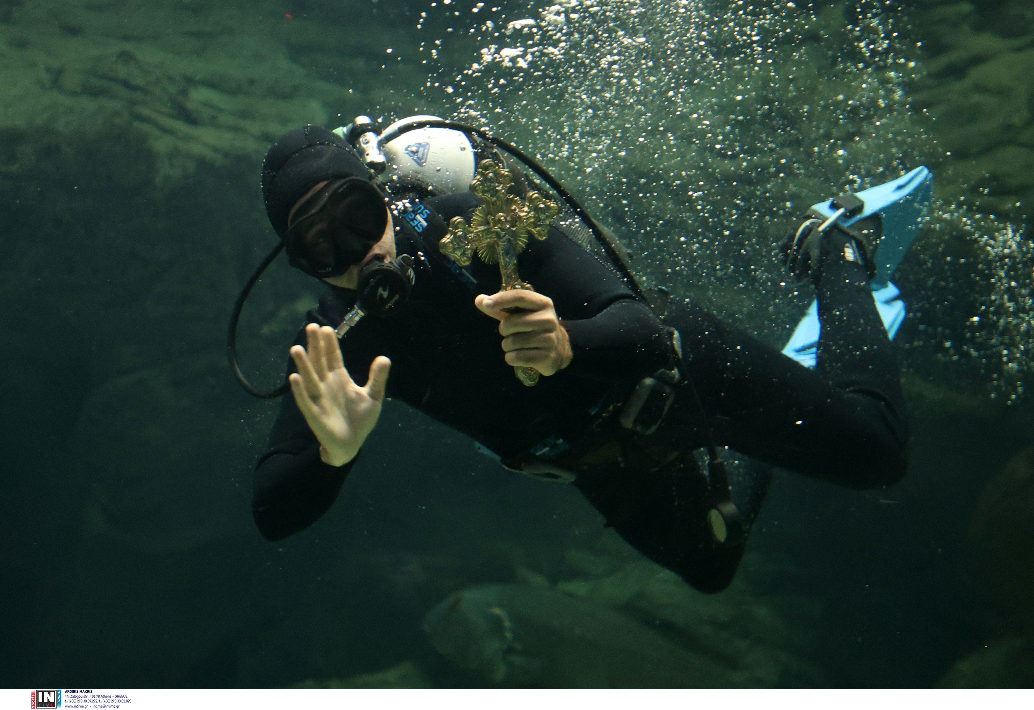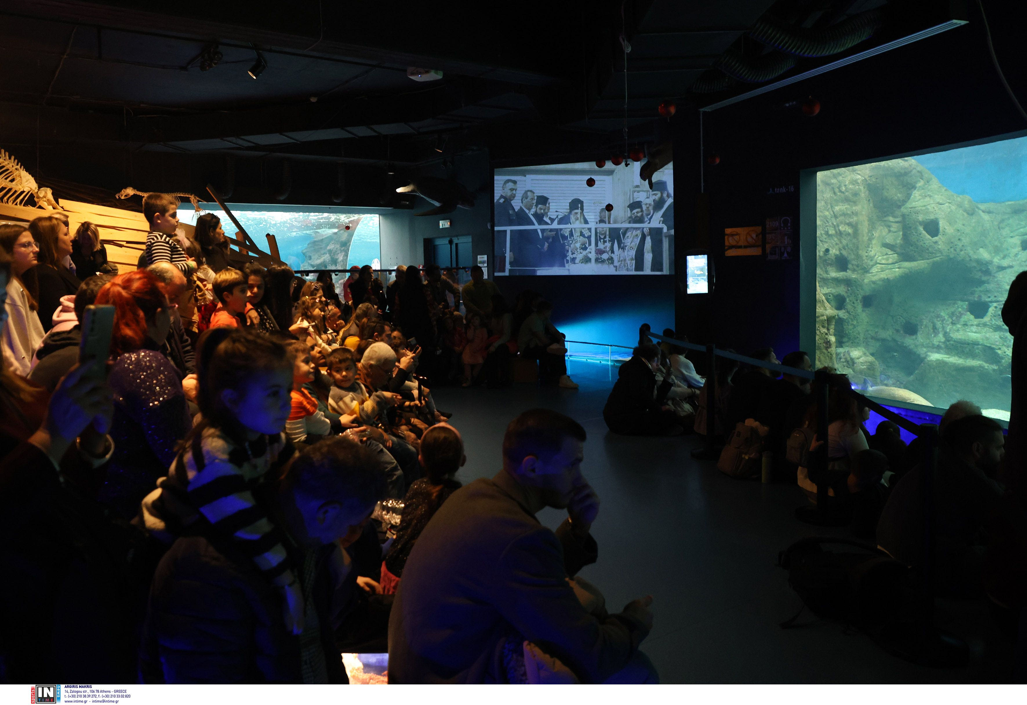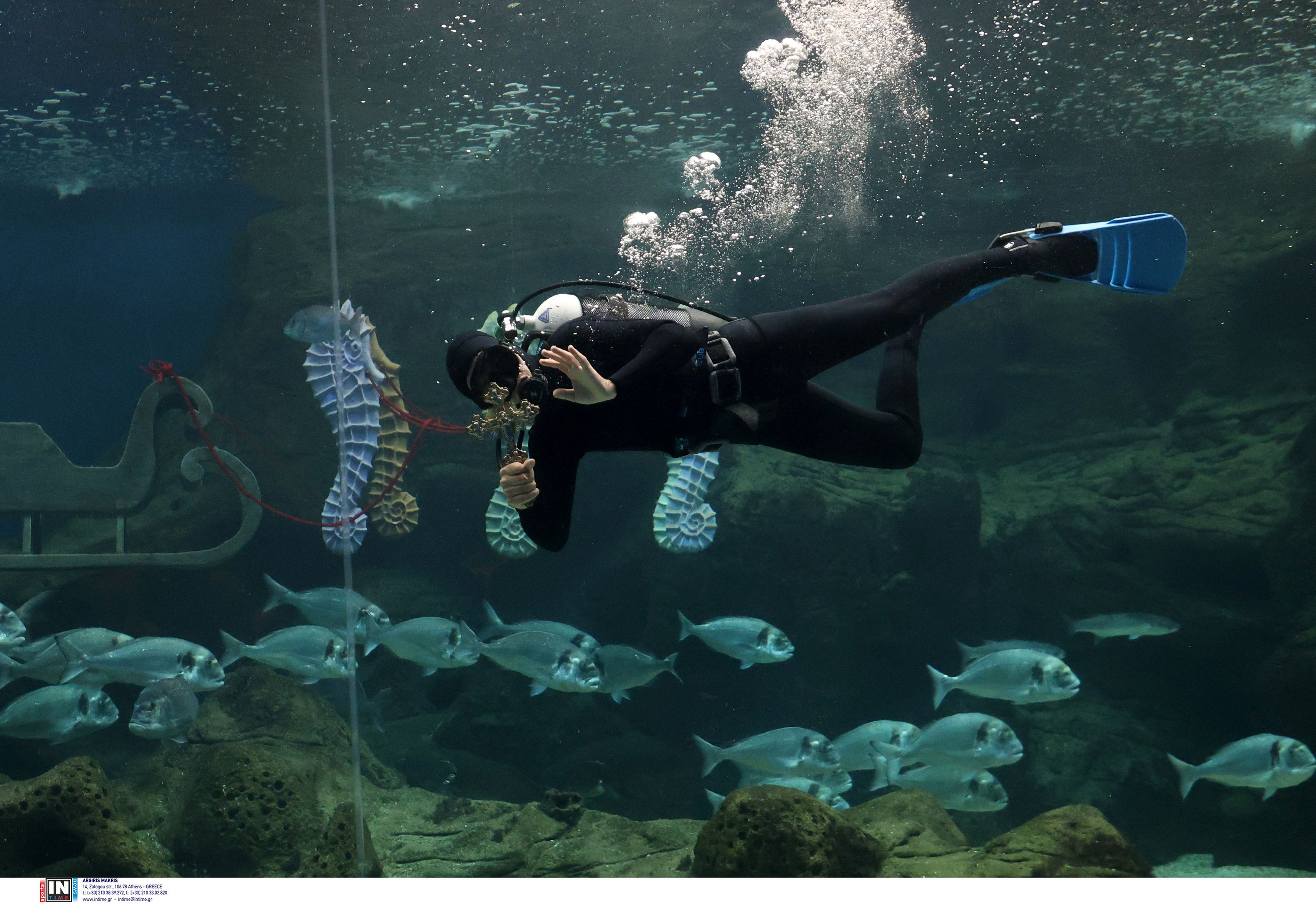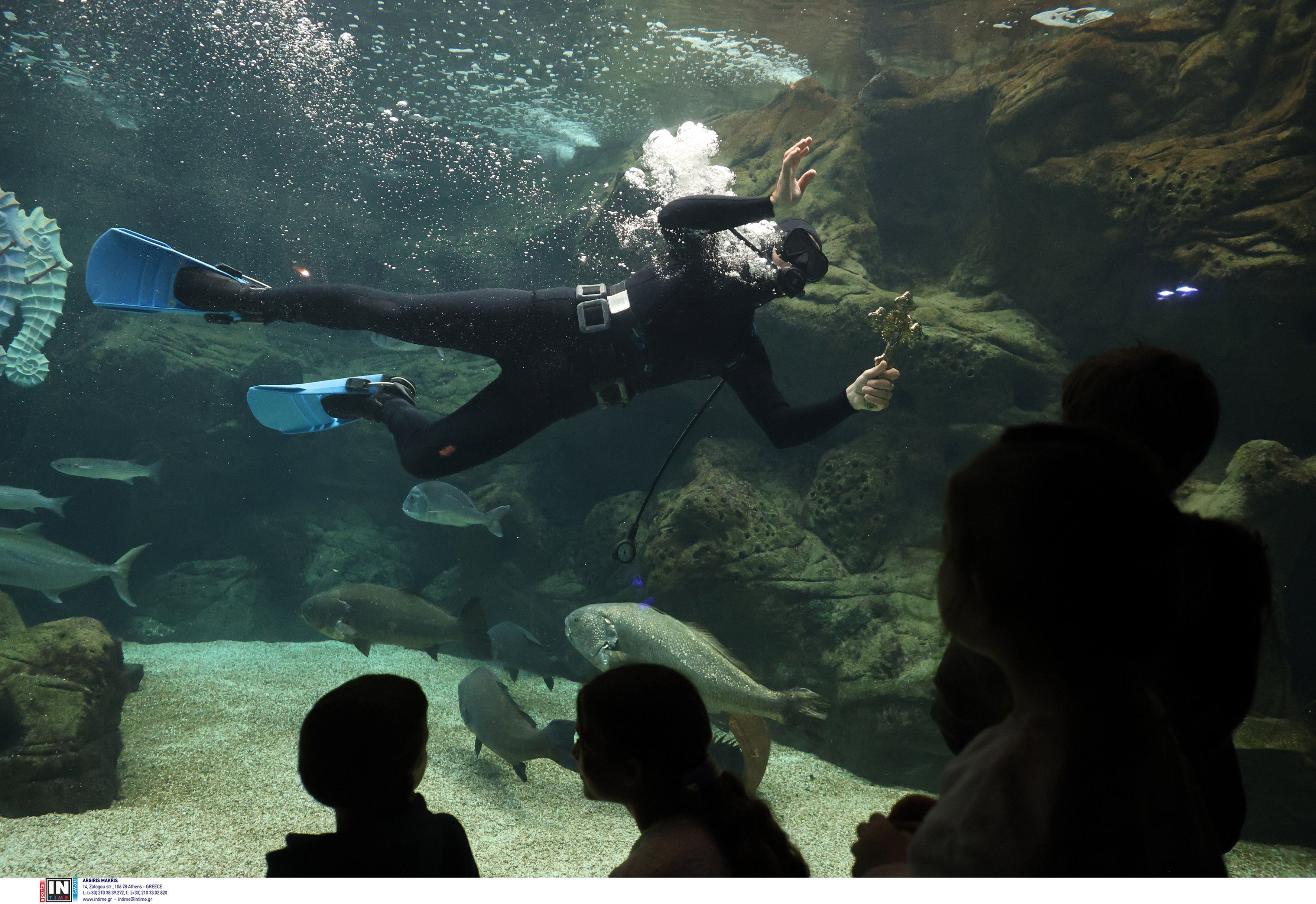 Δύτης βούτηξε στην δεξαμενή του ενυδρείου για να πιάσει τον σταυρό, ενώ την τελετή ευλόγησε ο Αρχιεπίσκοπος Κρήτης κ.κ. Ευγένιος.