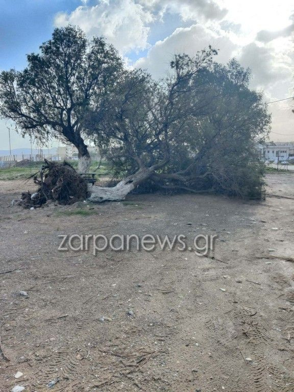 Στο παραλιακό μέτωπο Κισσάμου δέντρο ξεριζώθηκε σε παραλία ενώ μία ταμπέλα καταστήματος έπεσε στην οροφή της εκκλησίας του Τιμίου Σταυρού, σπάζοντας κεραμμύδια αλλά και τον σταυρό.