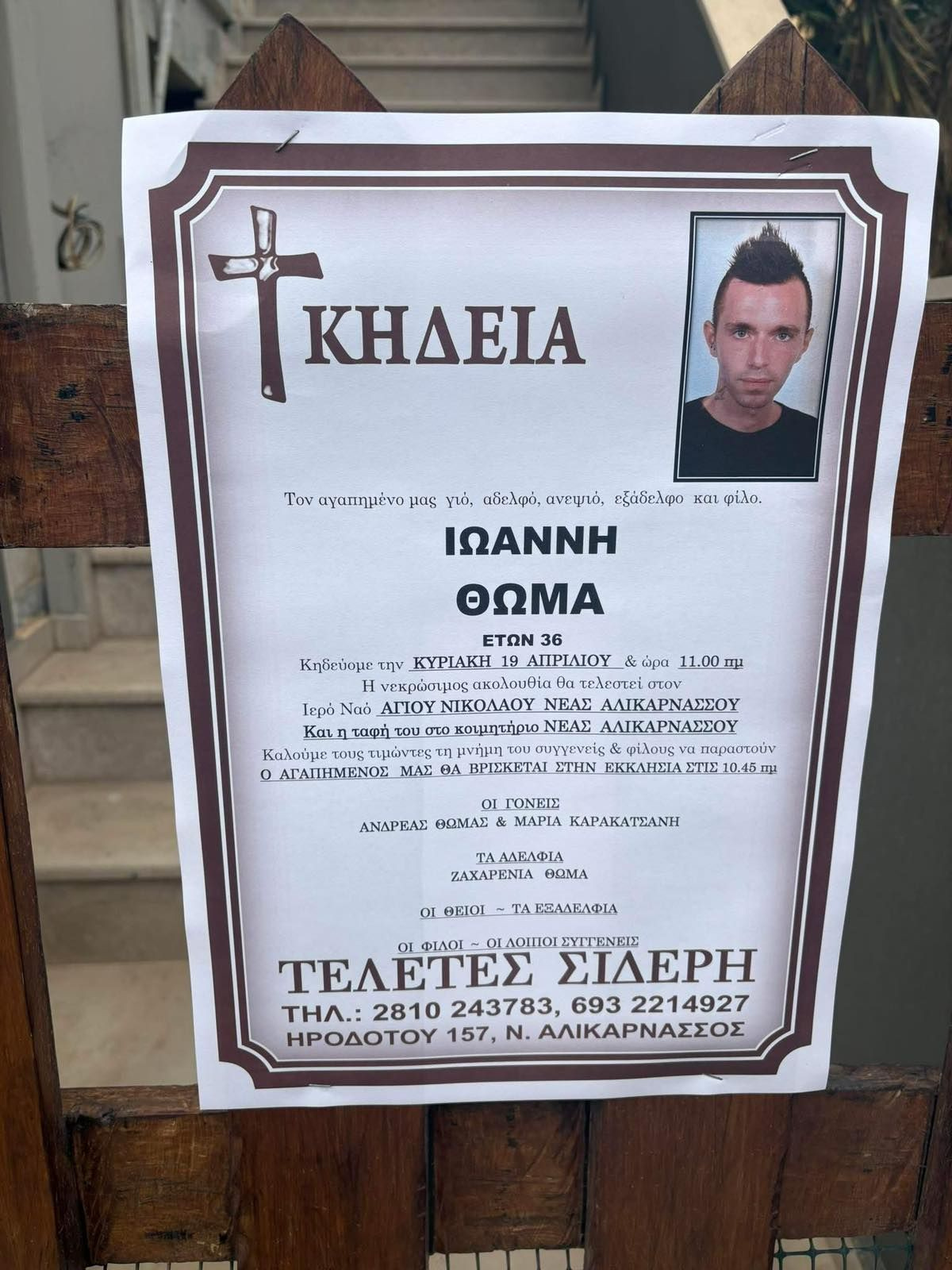 Θρήνος επικρατεί στην τοπική κοινωνία του Ηρακλείου από τον θάνατο του Ιωάννη Θωμά που ήταν μόλις 36 χρονών.