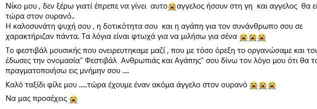Τα social media κατακλύστηκαν από μηνύματα αποχαιρετισμού, με φίλους και συναδέλφους να κάνουν λόγο για έναν υπέροχο άνθρωπο και χαμογελαστό άνθρωπο.