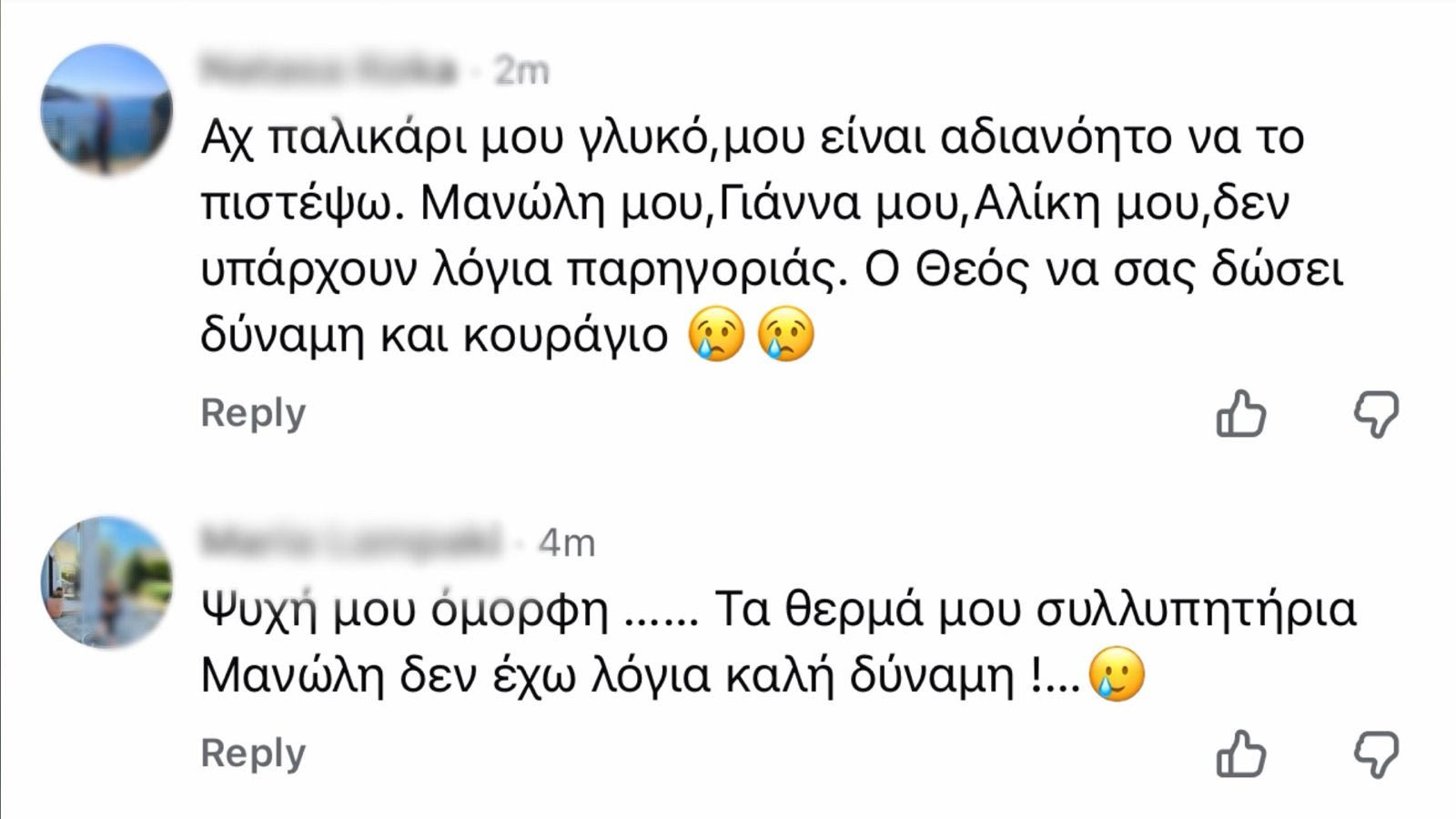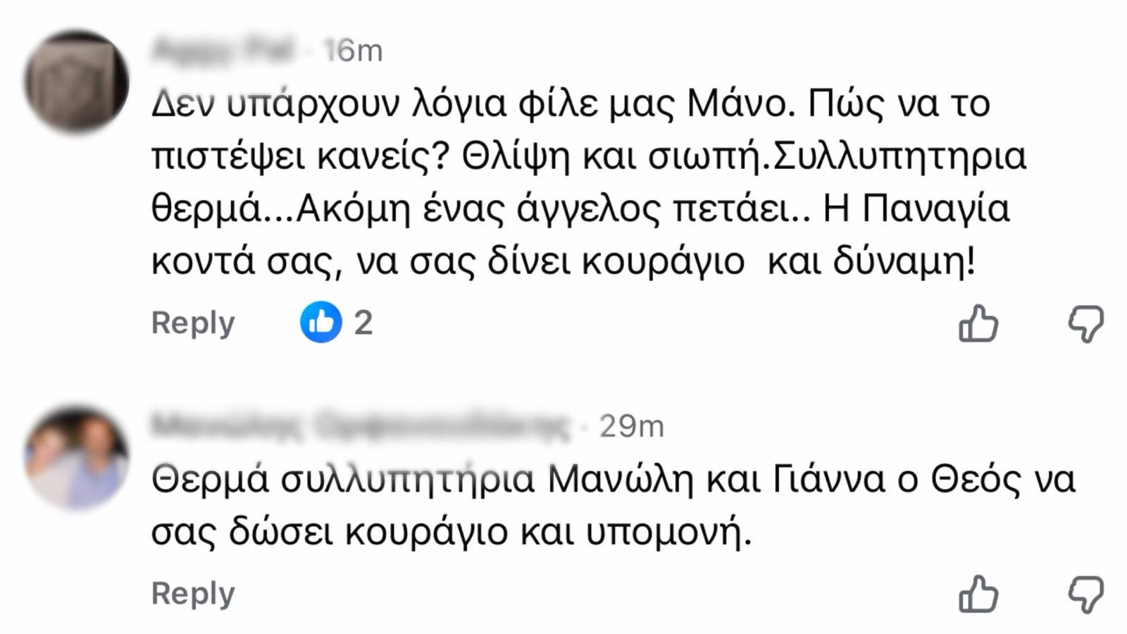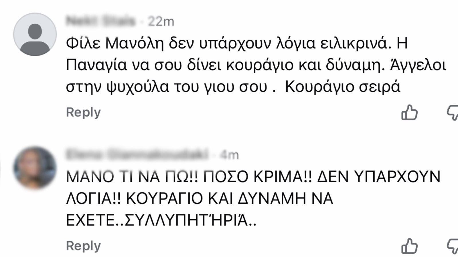 Η συγκινητική ανάρτηση προκάλεσε άμεσα αντιδράσεις, με φίλους και γνωστούς να σπεύδουν να εκφράσουν με τα δικά τους μηνύματα τη συμπαράστασή τους στην οικογένεια.