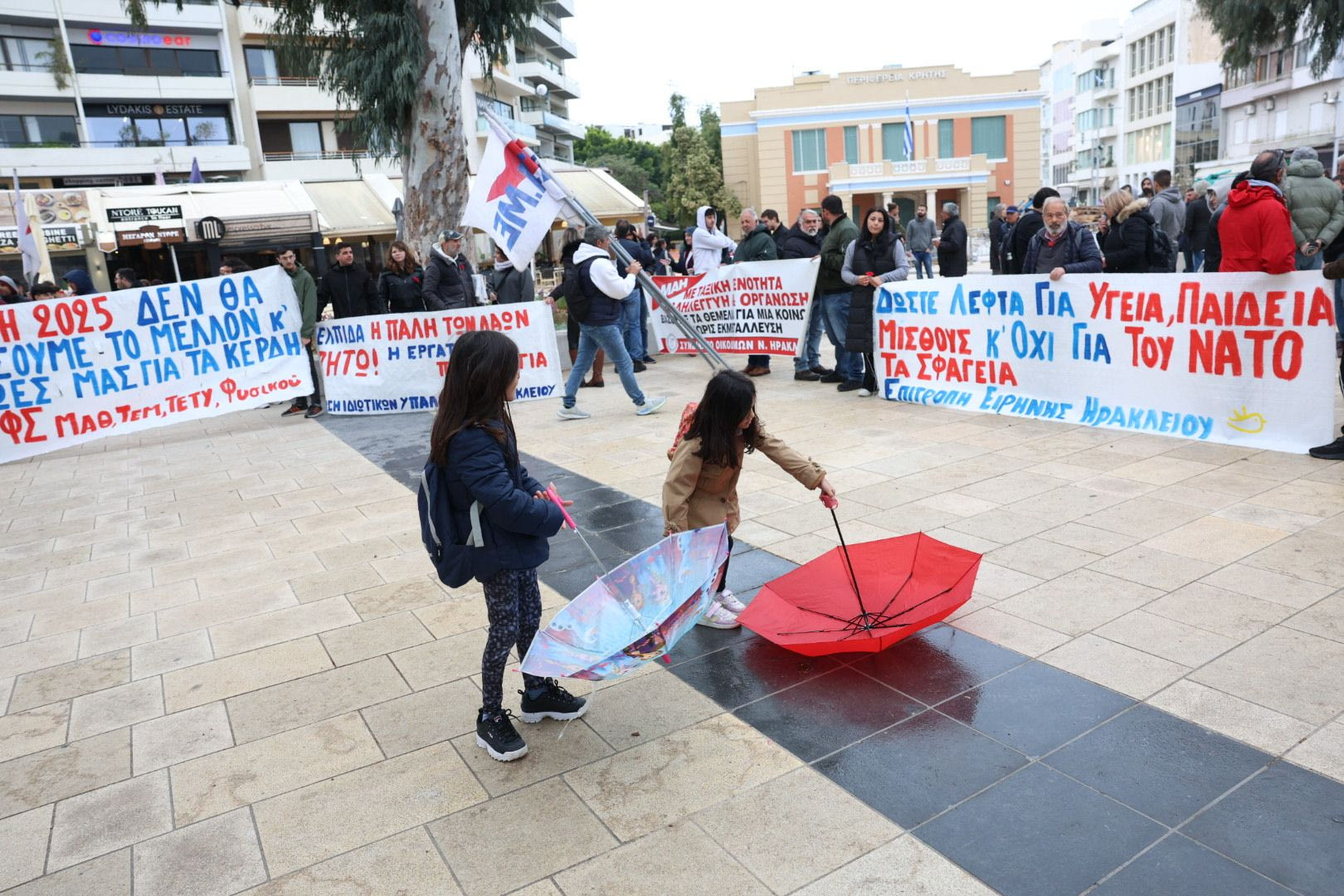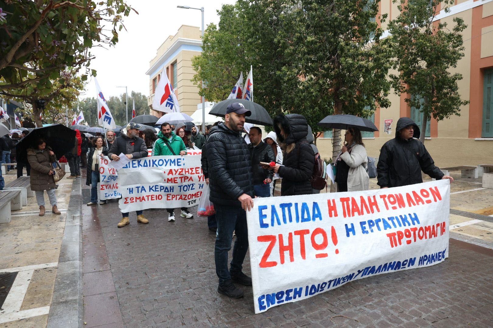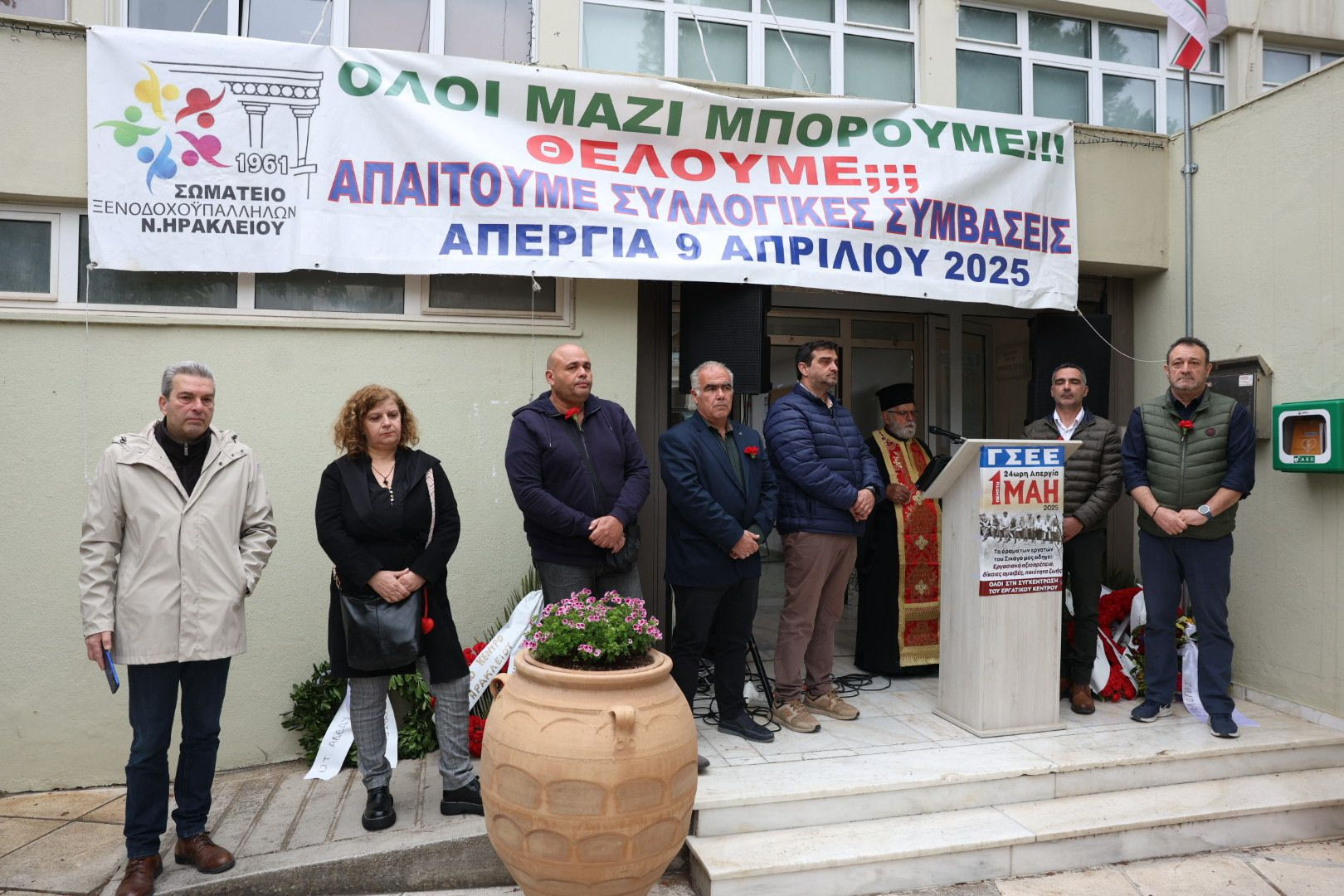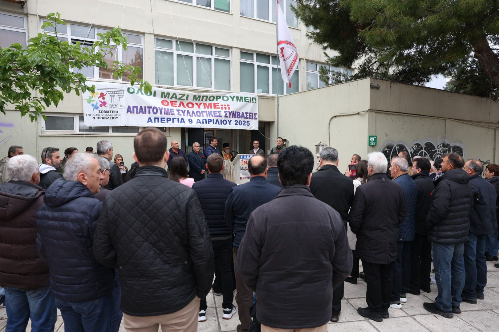Το πρωί της Πέμπτης, ο κόσμος συγκεντρώθηκε για τις επετειακές εκδηλώσεις στο Εργατικό Κέντρο Ηρακλείου.