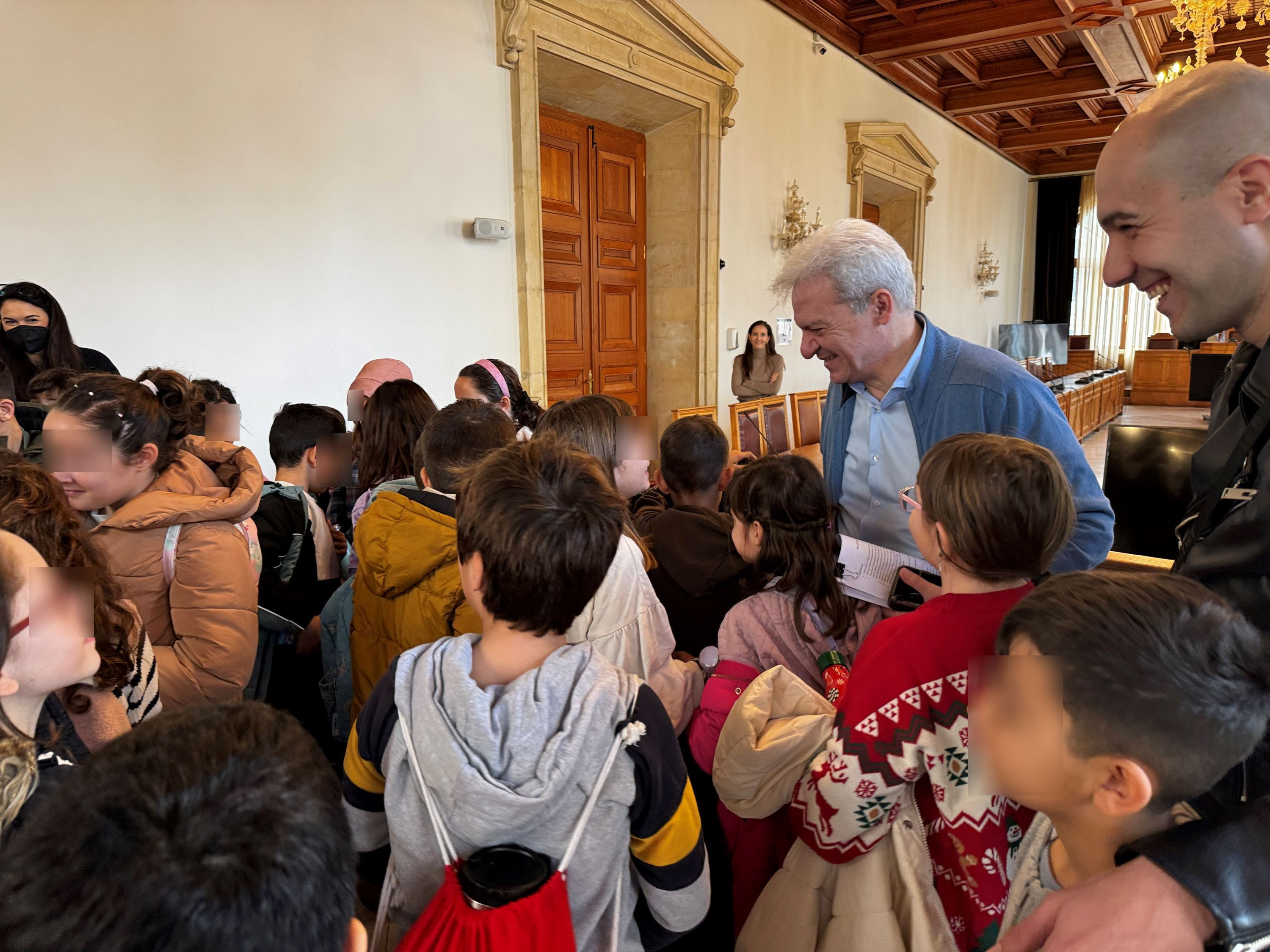 Τα παιδιά της Δ’ Τάξης του 24ου και 31ου Δημοτικού Σχολείου μαζί με τους εκπαιδευτικούς τους, υποδέχθηκε ο Δήμαρχος Ηρακλείου Αλέξης Καλοκαιρινός στην αίθουσα «Ελευθέριος Βενιζέλος» στη Λότζια, το πρωί της Παρασκευής 23/1.