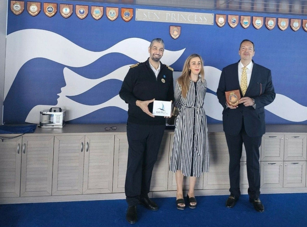 Στο πλαίσιο αυτής της ανάπτυξης, το λιμάνι είχε τη μεγάλη χαρά να υποδεχθεί το υπερπολυτελές κρουαζιερόπλοιο Sun Princess στην παρθενική του προσέγγιση. Κατά την παραδοσιακή Τελετή Ανταλλαγής Πλακετών, ο Διευθύνων Σύμβουλος του Οργανισμού Λιμένος Ηρακλείου, Μηνάς Παπαδάκης, αντάλλαξε αναμνηστικά δώρα με τον Πλοίαρχο του πλοίου, Captain Paolo Arrigo, και τον Staff Captain Valerio Esposito.