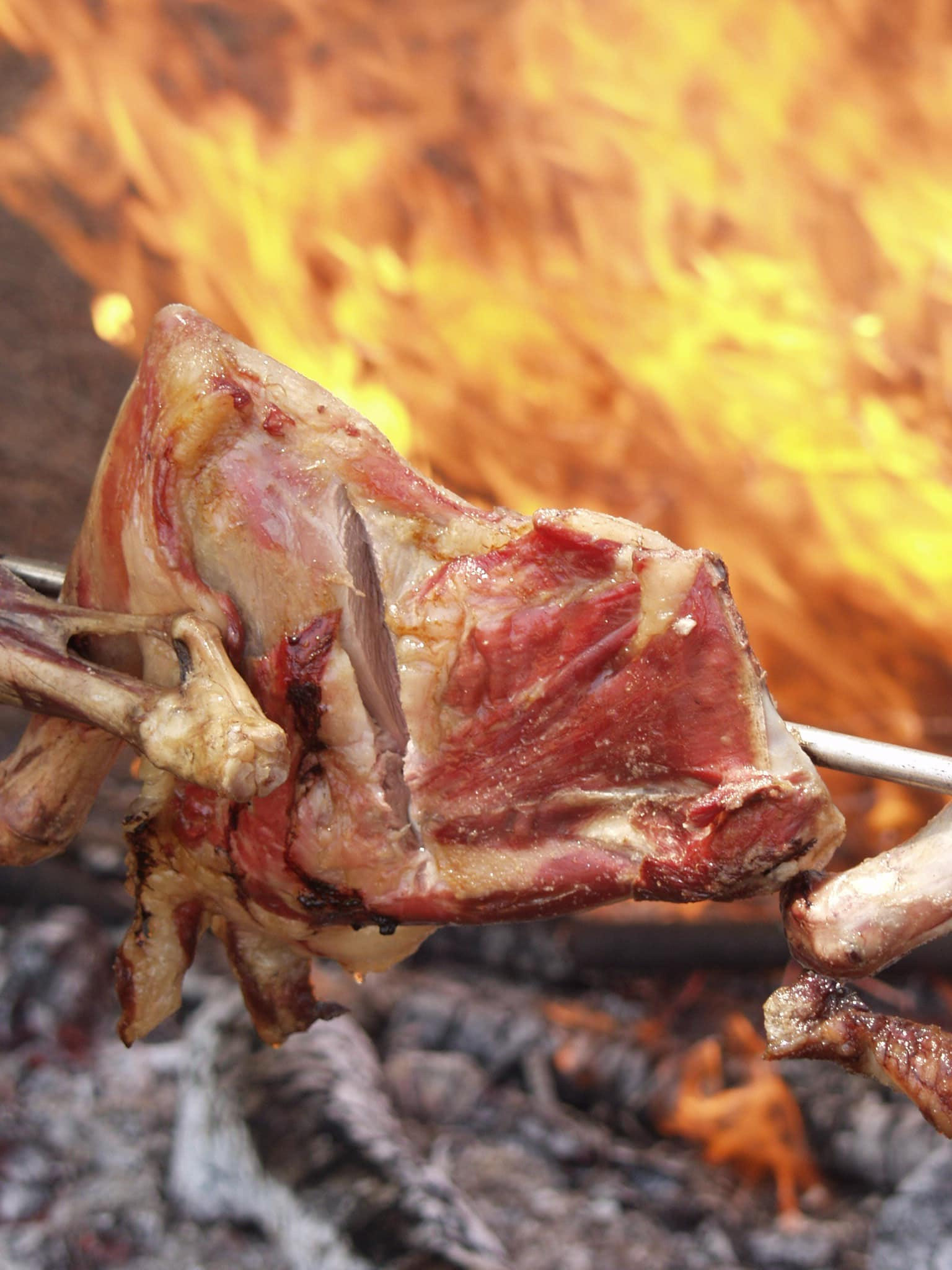 Το κρέας αρνί χρονιάρικο συνήθως (ζυγούρι) από 14 κιλά και πάνω ψήνεται σχεδόν με ένα πρωτόγονο τρόπο, αντίκρυ στην φωτιά . Για 5-6 ώρες φλερτάρει , συνεχώς με την θερμή ανάσα της φλόγας, που τροφοδοτείται συνεχώς με ξύλα. Κι αν στον κλασσικό σουβλιστό ο κανόνας της επιτυχίας είναι τα πυρακτωμένα κάρβουνα εδώ μιλάμε για ένα «σκληρό» παιχνίδι φωτιάς, ανέμου και απεριόριστης υπομονής από ψήστες και θεατές.
