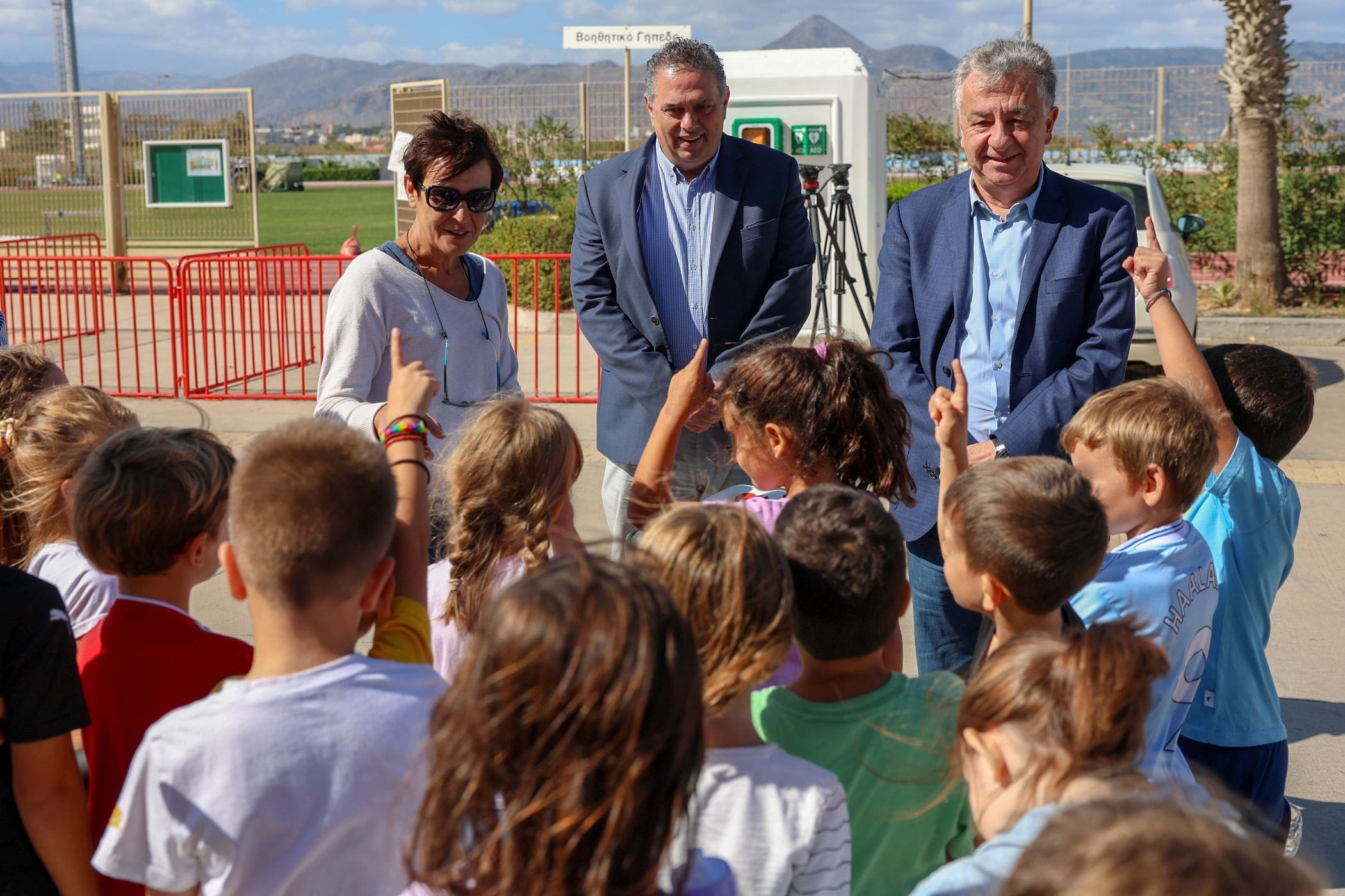 Αξίζει να επισημανθεί ότι κατά την διάρκεια παρουσίασης λειτουργίας των απινιδωτών στο Παγκρήτιο Στάδιο, στο χώρο βρέθηκαν μαθητές και μαθήτριες του 31ου δημοτικού σχολείου Ηρακλείου που συνοδεύονταν από την δασκάλα τους Νίκη Νταμπακάκη, και ενημερώθηκαν για την χρησιμότητα του ιατρικού εξοπλισμού.