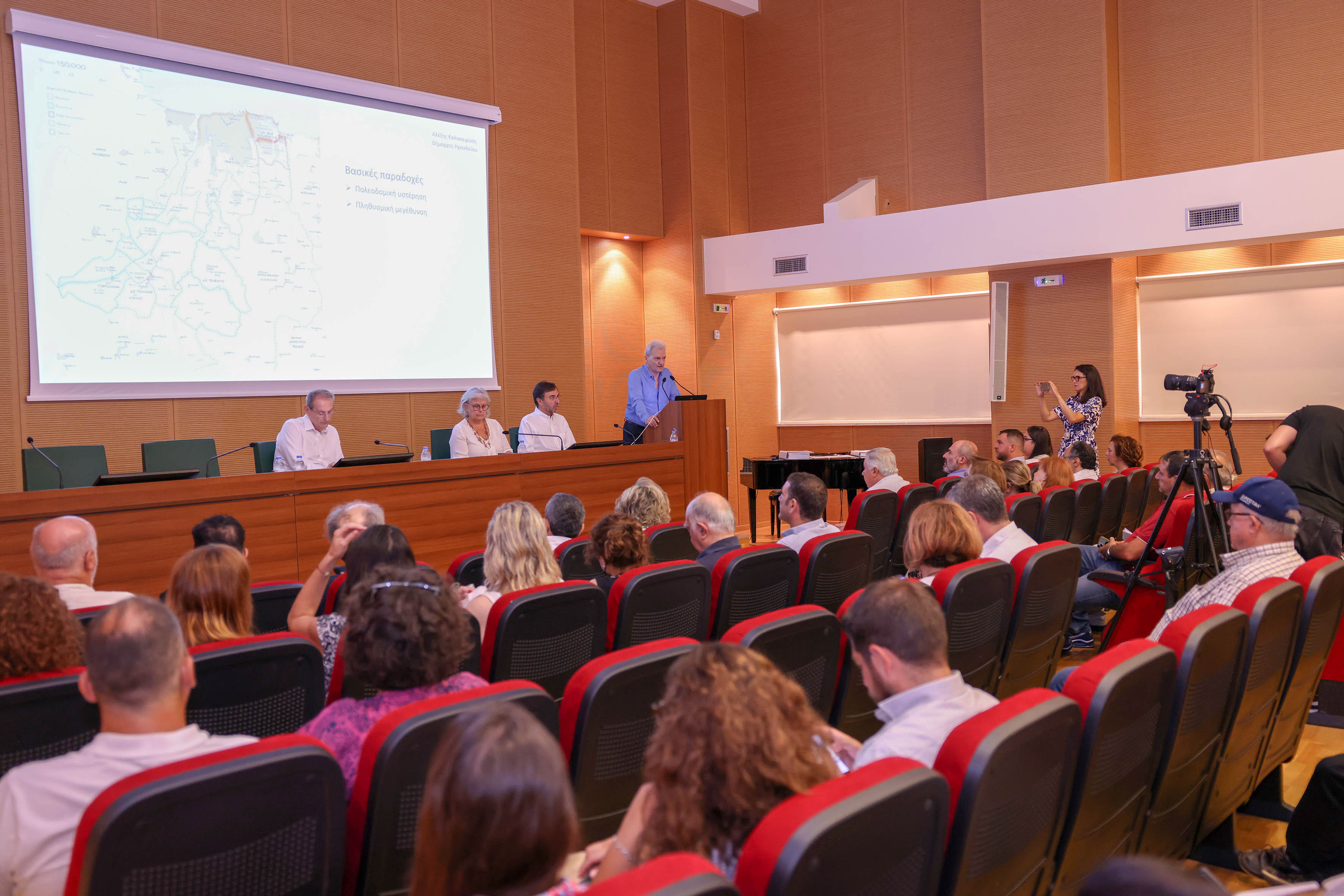 Σε ειδική ανοιχτή εκδήλωση στην αίθουσα «Δομήνικος Θεοτοκόπουλος» της Βικελαίας Δημοτικής Βιβλιοθήκης, η οποία μεταδόθηκε και διαδικτυακά, παρουσιάστηκαν από τους μελετητές τα τρία εναλλακτικά σενάρια του Τοπικού Πολεοδομικού Σχεδίου (ΤΠΣ) του Δήμου Ηρακλείου, παρουσία του Δημάρχου Ηρακλείου Αλέξη Καλοκαιρινού, της Αντιδημάρχου Πολεοδομίας Στέλας Αρχοντάκη Καλογεράκη, στελεχών της Δημοτικής Αρχής και της Πολεοδομίας Ηρακλείου, εκπροσώπων επιστημονικών και κλαδικών φορέων, καθώς και πολιτών.