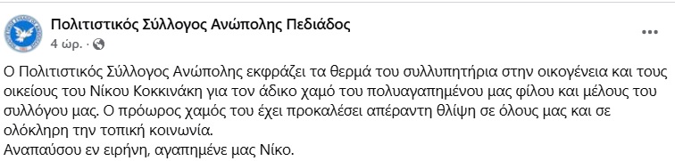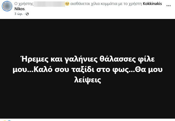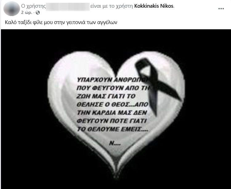«Παραμονή των φώτων ο θεός, σε ζήτησε κοντά του/ στην Άνω Πόλη να βρεθείς, μέσα στην αγκαλιά του», γράφει ένας φίλος του ενώ κάποιος άλλος αναφέρει σε ανάρτησή του «βαθιά θλίψη μας σκέπασε όλους. Έχουμε χάσει κι άλλους ανθρώπους, μα εσύ ήσουν κάτι το ξεχωριστό».