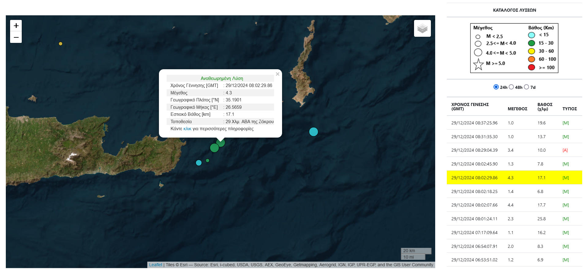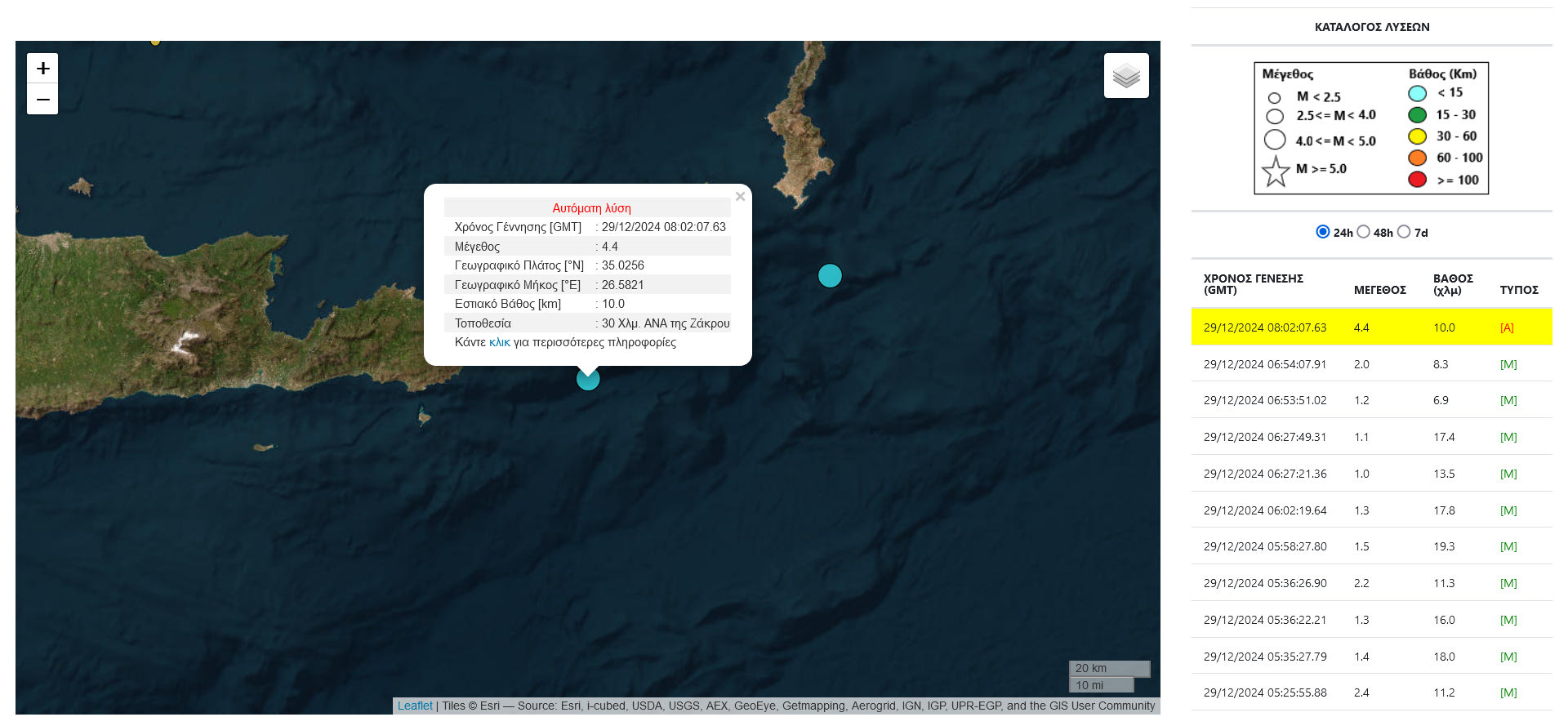 Σεισμική δόνηση 4,4 βαθμών της κλίμακας Ρίχτερ σημειώθηκε λίγο μετά τις 10 το πρωί 30 Χλμ. ΑΝΑ της Ζάκρου.