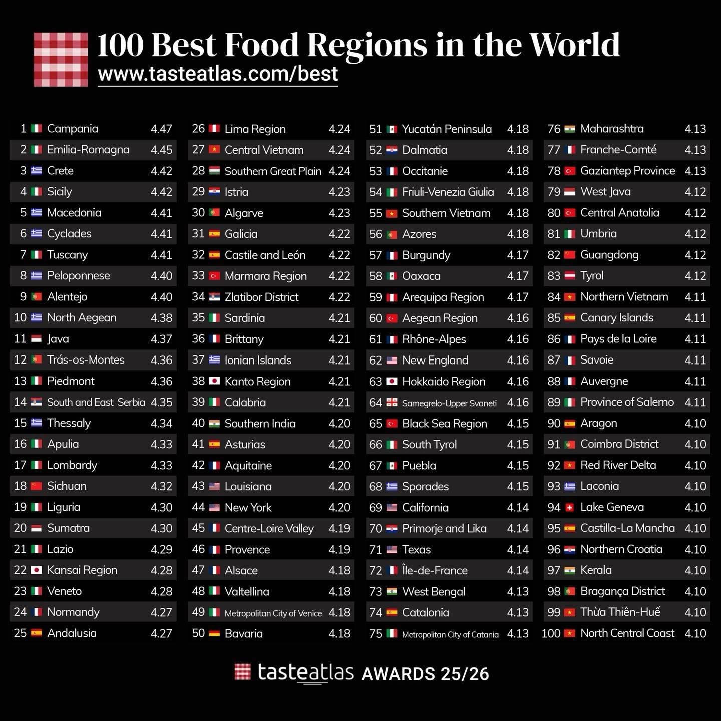 Οι υπόλοιπες κορυφαίες περιοχές του Taste Atlas και τα πιάτα που τις ανέδειξαν