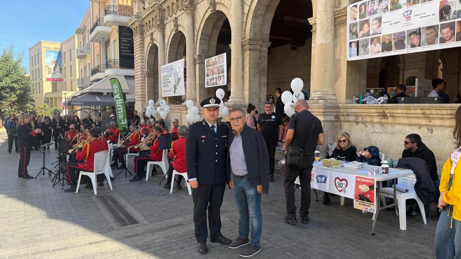 Μπροστά από τη Λότζια, στο κέντρο του Ηρακλείου, πραγματοποιήθηκε την Κυριακή η εκδήλωση που διοργάνωσε ο Σύλλογος SOS Τροχαία Ατυχήματα, στο πλαίσιο της Παγκόσμιας Ημέρας Μνήμης Θυμάτων Τροχαίων Ατυχημάτων. Η ατμόσφαιρα ήταν ιδιαίτερα συγκινητική, με τις μελωδίες της Φιλαρμονικής του Δήμου Ηρακλείου να πλαισιώνουν με ευλάβεια τη δράση.