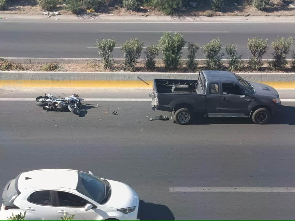 Ένα δίκυκλο που οδηγούσε ένας νεαρός άνδρας συγκρούστηκε με αγροτικό φορτηγό, ενώ και τα δύο οχήματα βρίσκονταν στη λωρίδα ταχείας κυκλοφορίας.