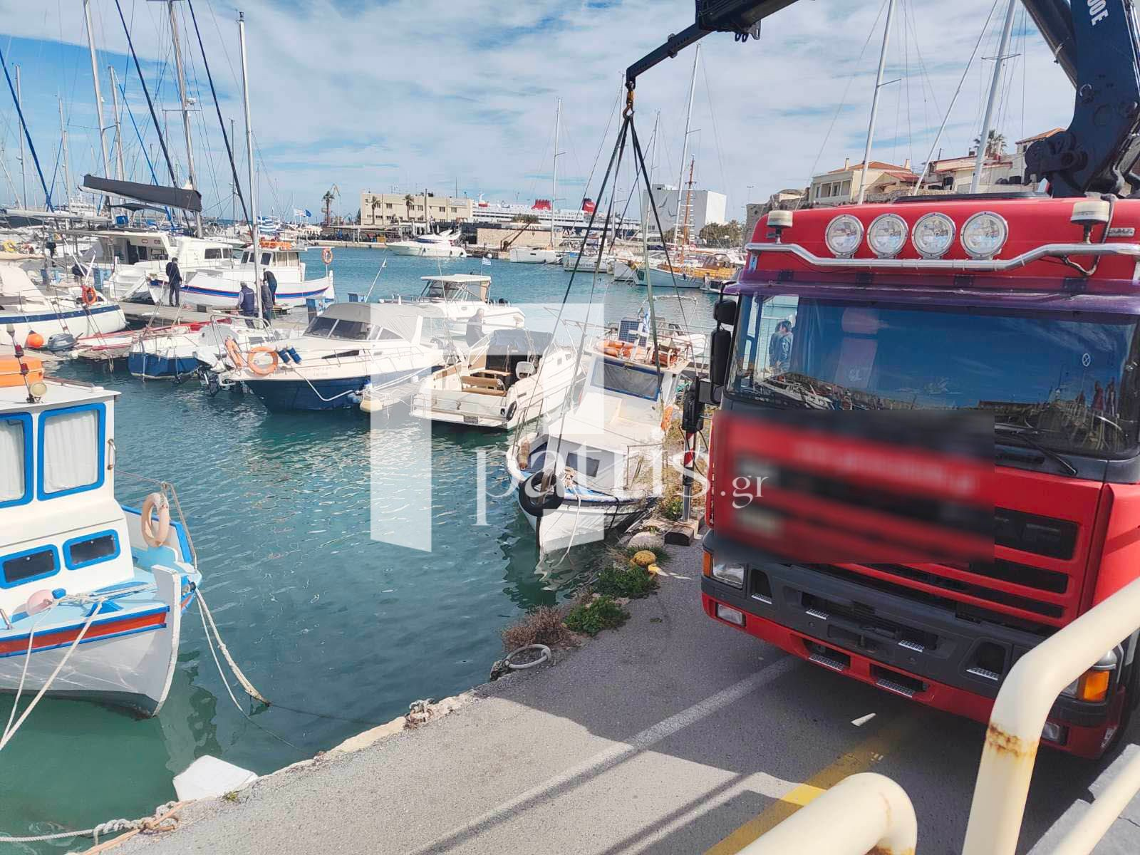 Λίγη ώρα αργότερα έφτασε το ειδικό μηχάνημα για την ανέλκυση του σκάφους.