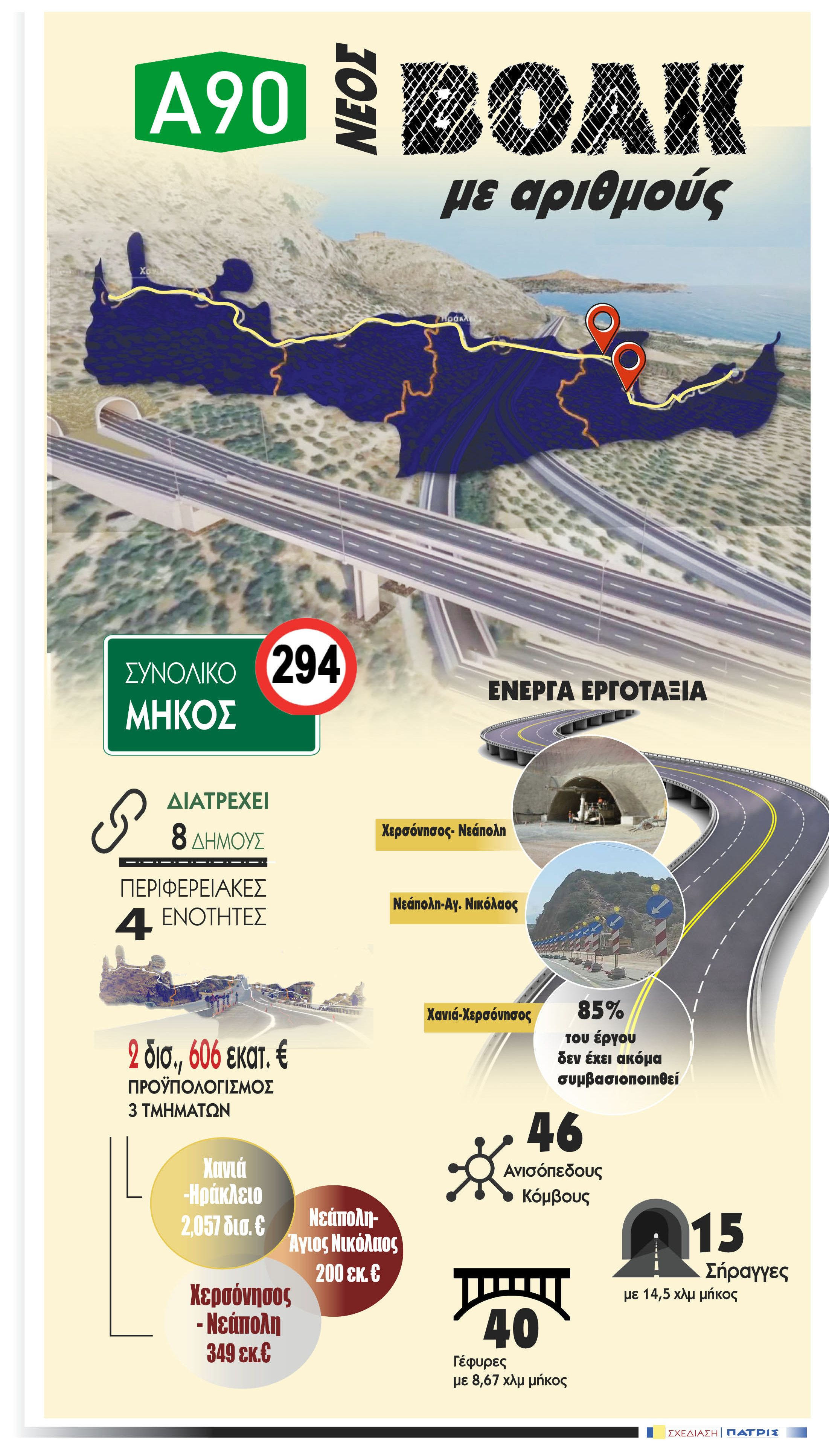 Ανάμεσα στα πολύ δύσκολα κομμάτια του έργου, είναι και αυτό που αφορά στην παράκαμψη του Ηρακλείου, η κατασκευή των τούνελ όπως αυτό στο Κακό Όρος, οι κόμβοι όπως στο Πάνορμο της Ανώπολης των Χανίων που έχουν σοβαρά ζητήματα σχεδιασμού. Αλλά το βέβαιο είναι ότι στην πορεία θα προκύψουν και κρίσιμα θέματα που θα τα βρούμε μπροστά μας…