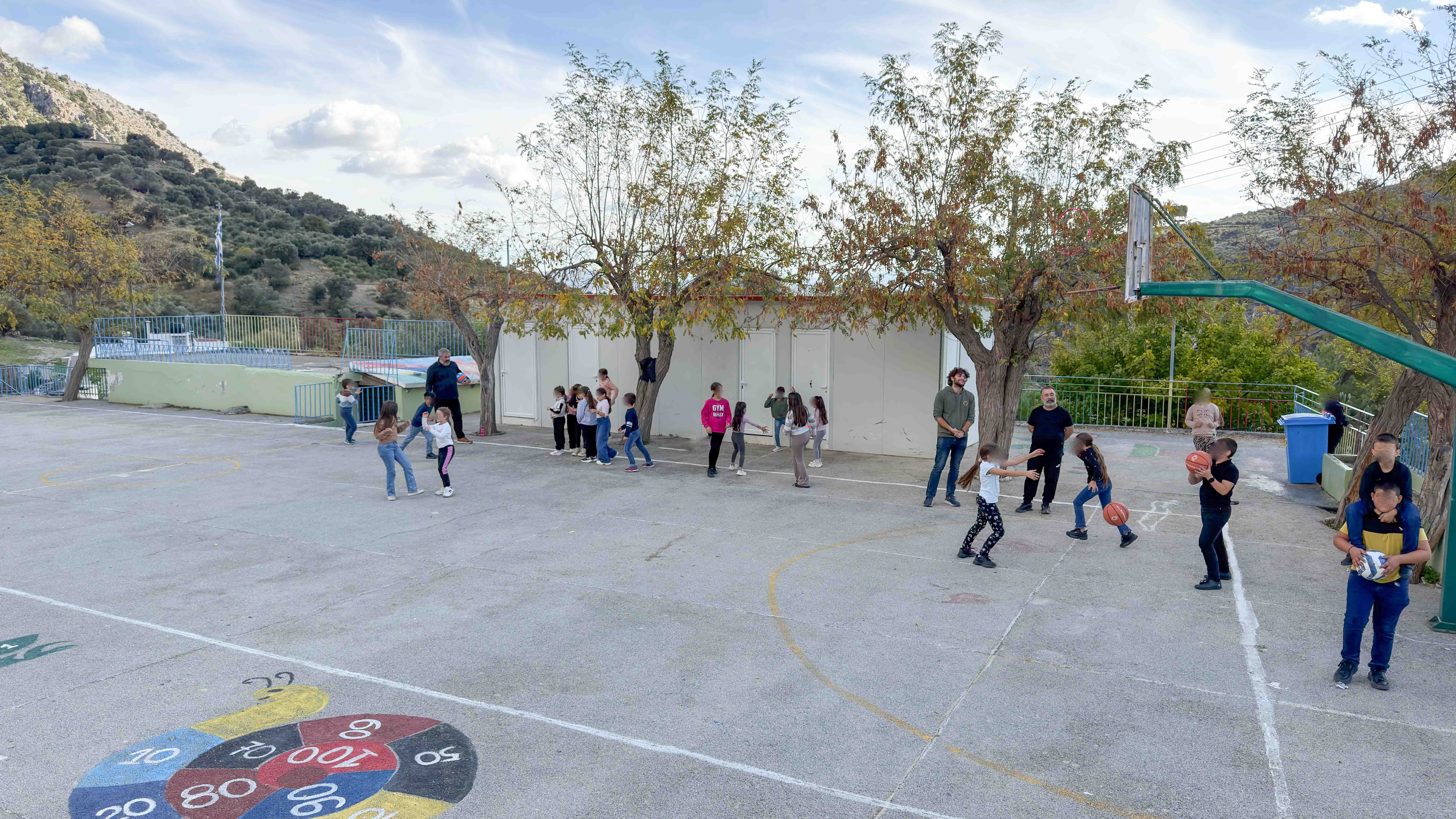 Στη συνέχεια, η ομάδα εκπαιδευτικών φυσικής αγωγής που αποτελούνταν από τους κυρίους Δημήτρη Ζλατιλίδη και Γιάννη Βελισσάρη, αφού ανέδειξε τη σημασία του αθλητισμού και της ομαδικότητας, αξιοποίησαν μαζί με τους μαθητές το αθλητικό υλικό που προσέφερε η Διεύθυνση Πρωτοβάθμιας Εκπαίδευσης για το μάθημα της γυμναστικής και έκαναν όλοι μαζί διάφορες αθλητικές δραστηριότητες.