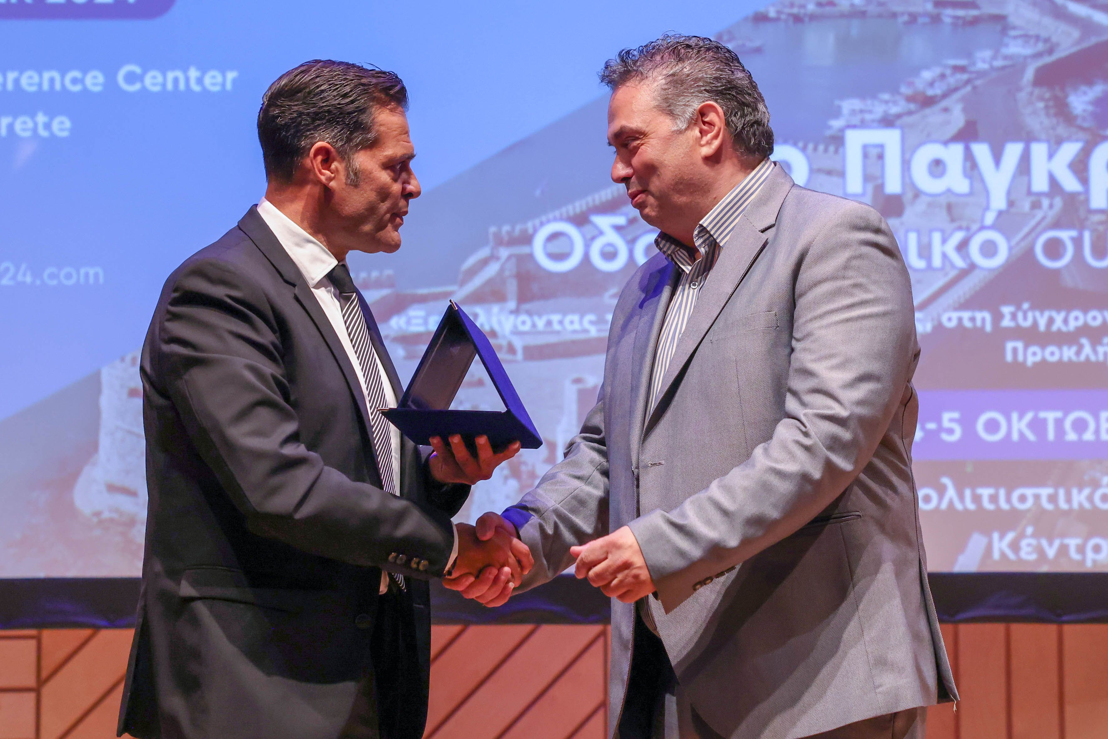 Ο Πρόεδρος της Πανελλήνιας Οδοντιατρικής Ομοσπονδίας Θανάσης Δεβλιώτης βράβευσε τον Αναπληρωτή Περιφερειάρχη Κρήτης Γιώργο Πιτσούλη για τη συμβολή του στο σχεδιασμό και την εφαρμογή του πρωτοποριακού προγράμματος προληπτικής οδοντιατρικής φροντίδας της Περιφέρειας Κρήτης.