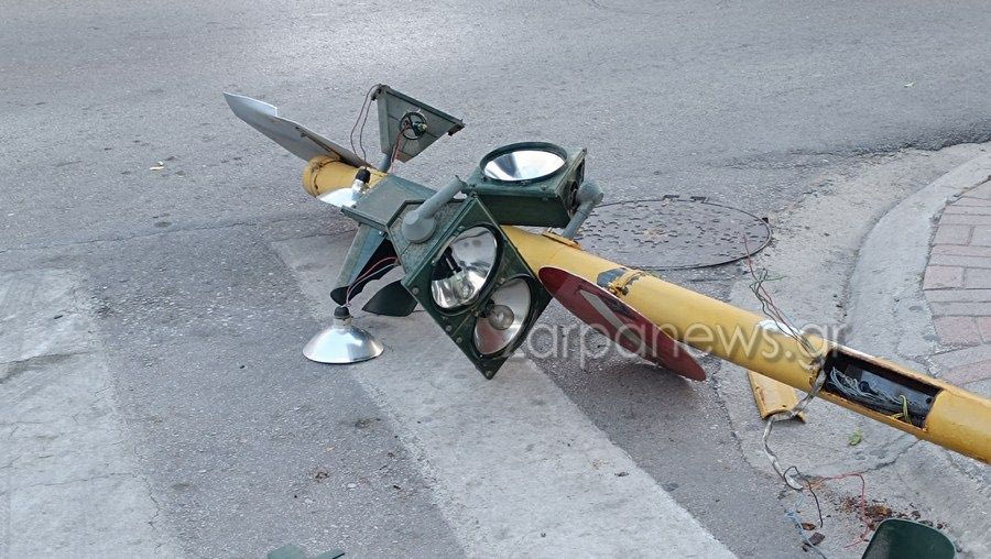 Ένα φανάρι οδικής κυκλοφορίας στη διασταύρωση των οδών Βενιζέλου και Κωστή Παλαμά, δίπλα στα σχολεία της Κοραή, βρέθηκε σπασμένο και πεσμένο στο έδαφος το πρωί της Δευτέρας.